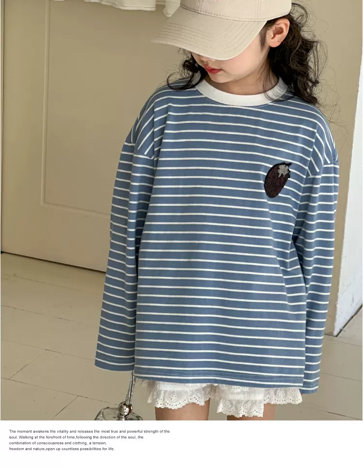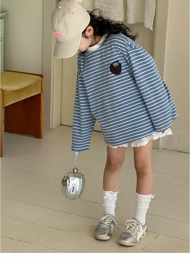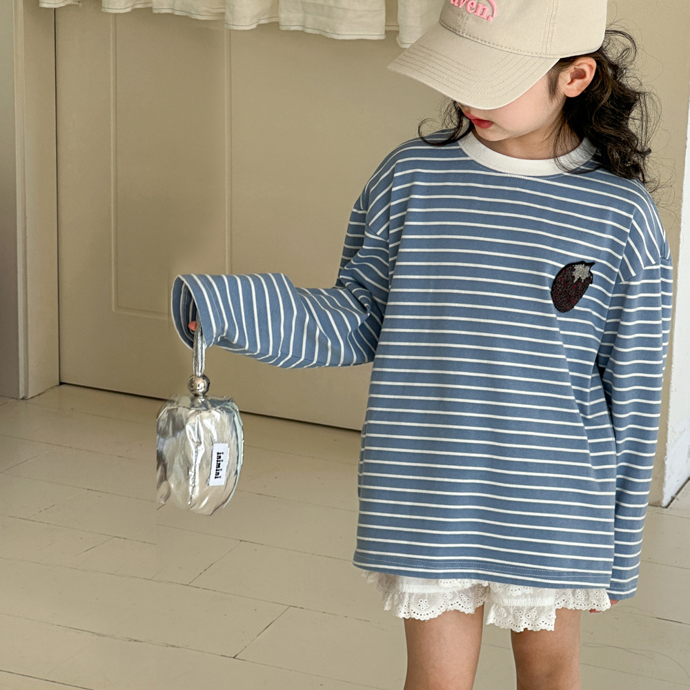 리틀 레드 피쉬 여아 티셔츠 2026년 신상품 이른 봄 여아용 화이트 스트라이프 자수 상의 아동용 긴팔 베이스 레이어 셔츠스토어 가기