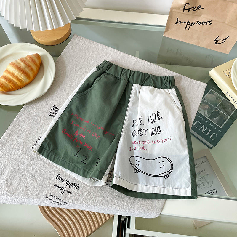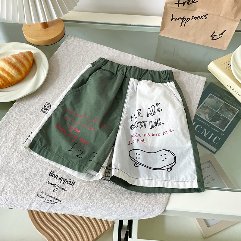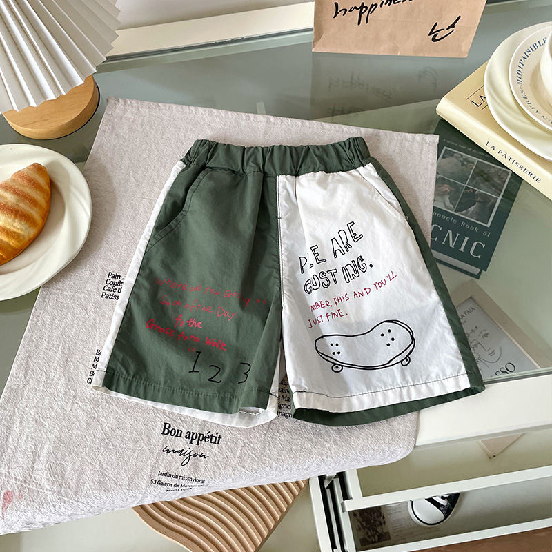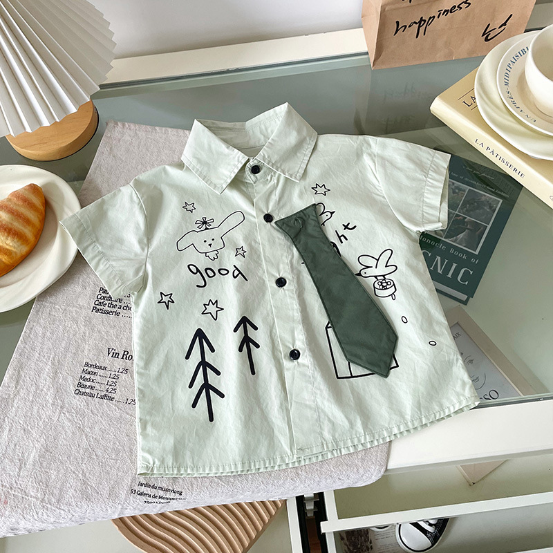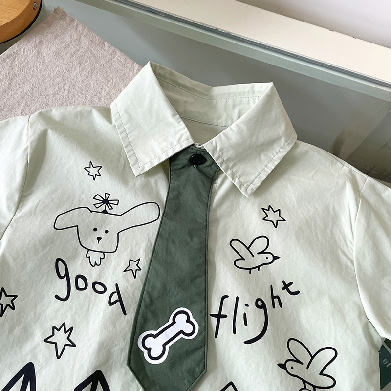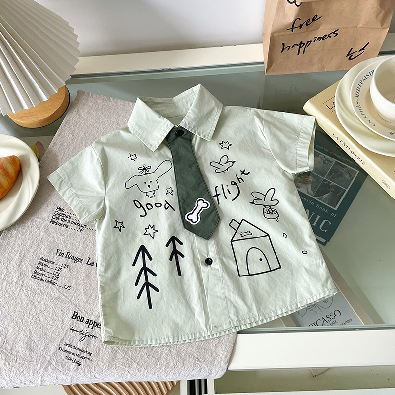 【재고 있음】남아 셔츠 세트 2025 여름 대학풍 멋스럽고 어린애같은 디자인 핸드페인팅 그래피티 반팔