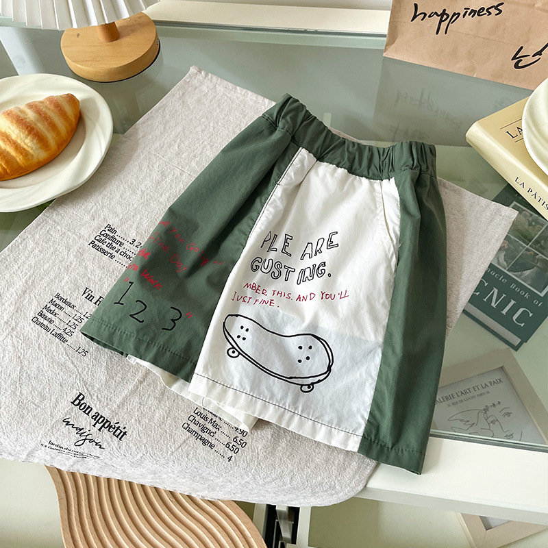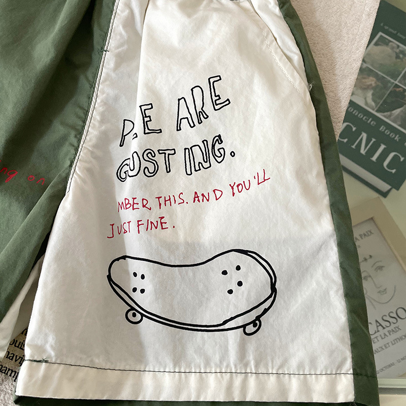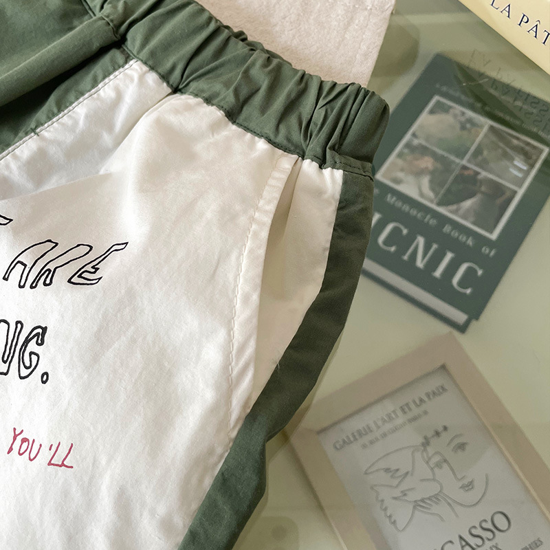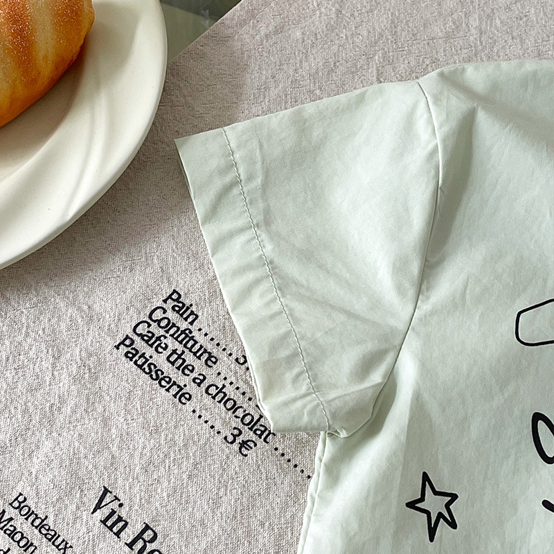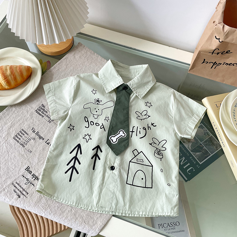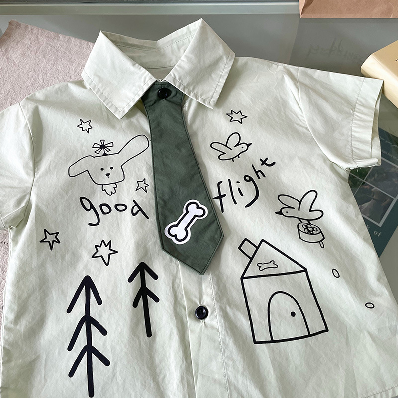 【재고 있음】남아 셔츠 세트 2025 여름 대학풍 멋스럽고 어린애같은 디자인 핸드페인팅 그래피티 반팔스토어 가기