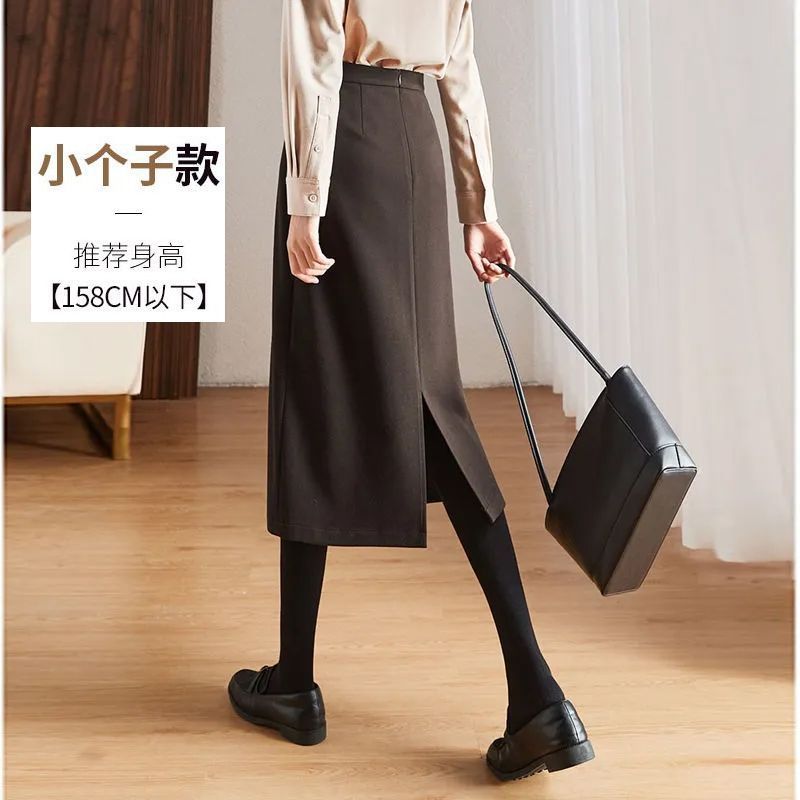 중장 치마 여자 2024 가을과 겨울 새로운 작은 캐릭터 스커트 높은 허리 슬리밍 스텝 엉덩이 치마스토어 가기