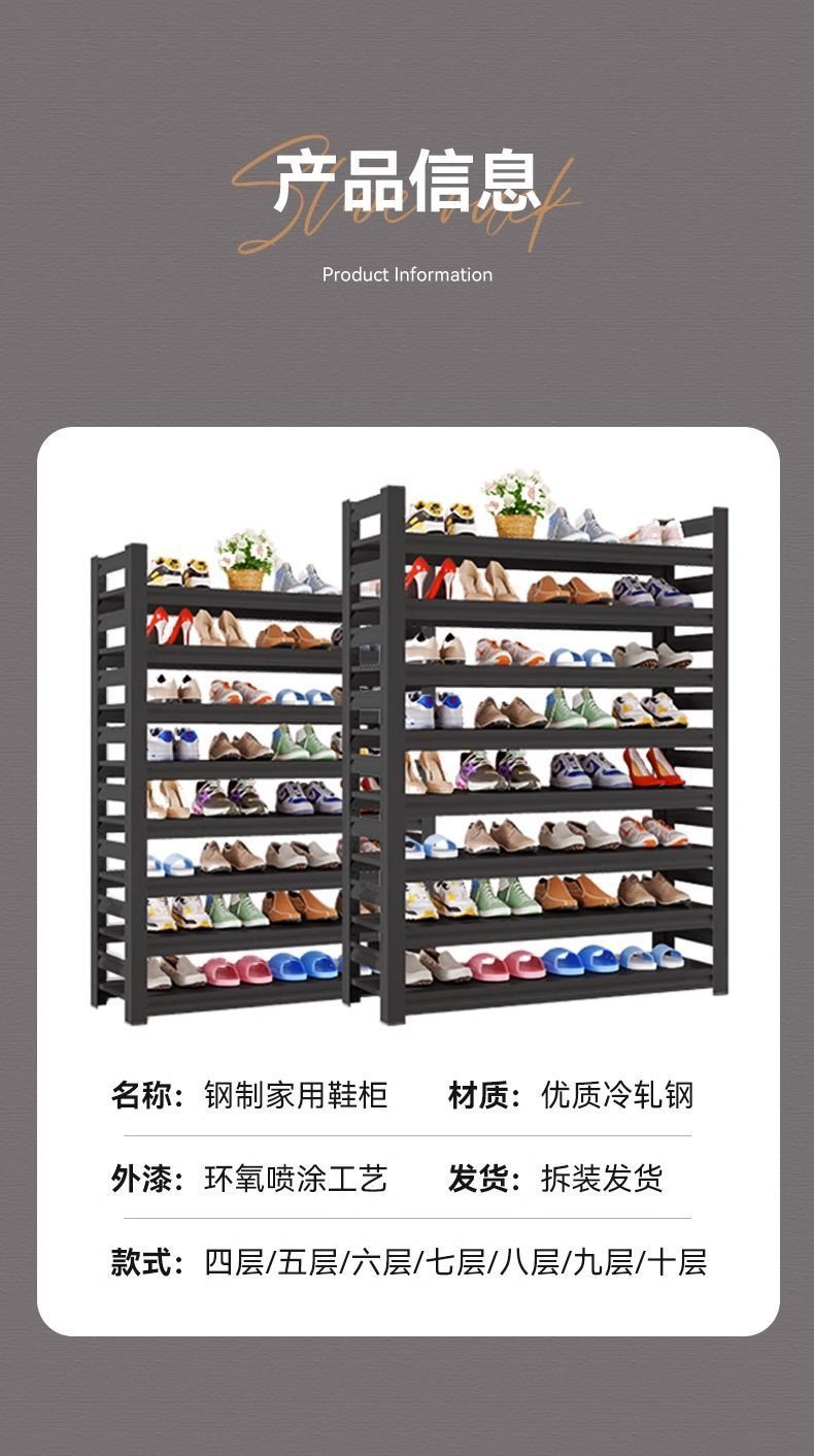 가정용 실내 도어 스틸 신발 선반 간단한 다층 대용량 스틸 프레임 공간 절약 경제적 인 가정용 신발 캐비닛