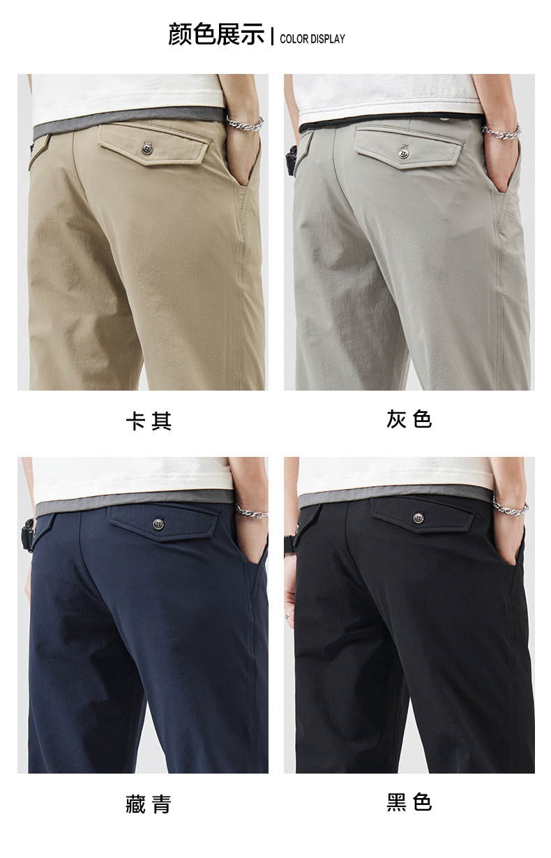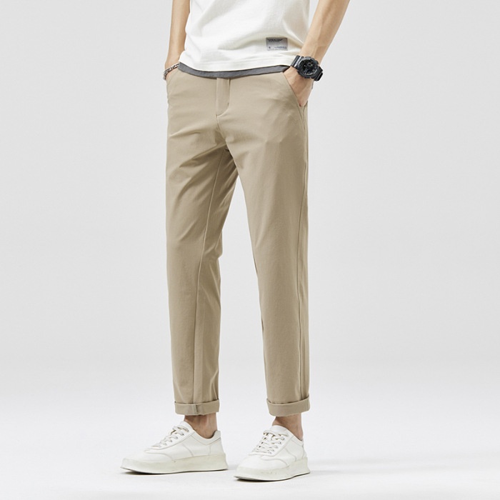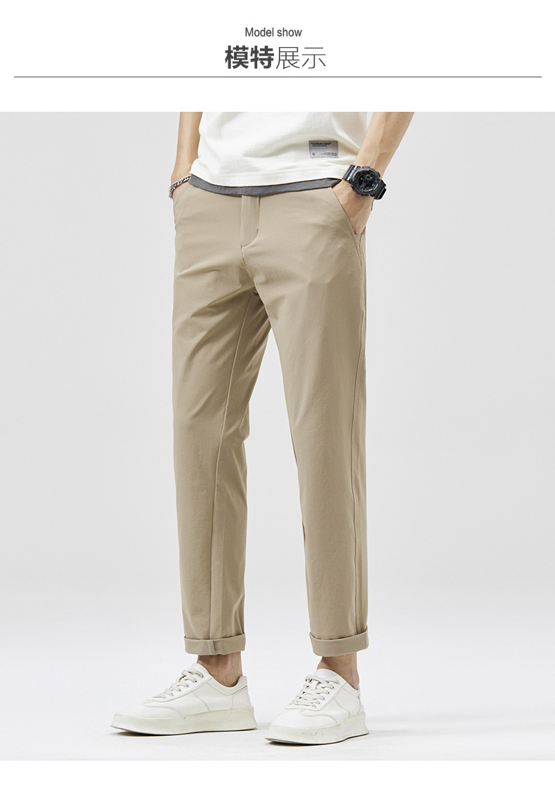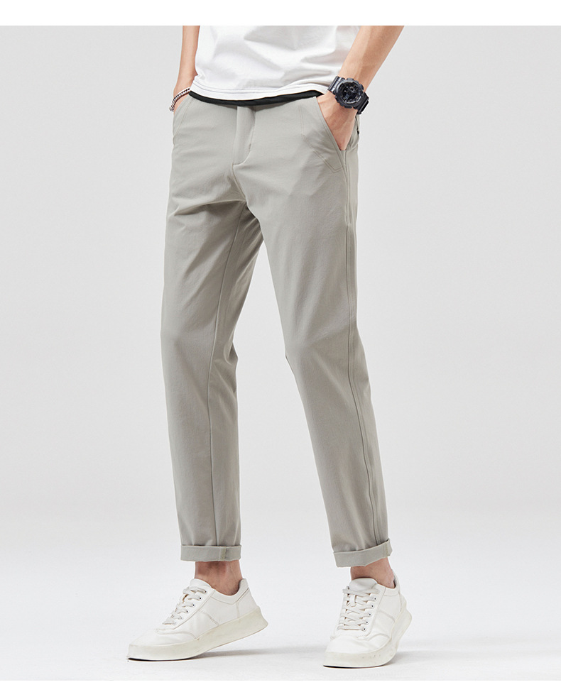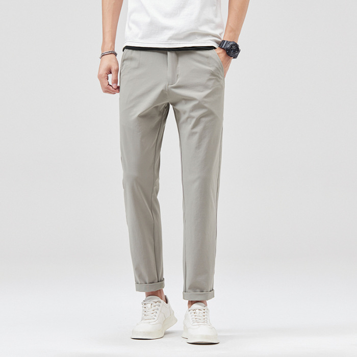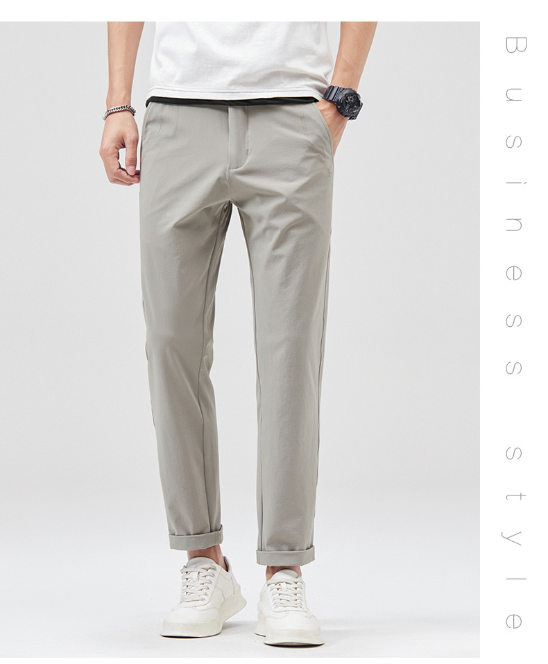 미색의 트렌디한 신상 남성용 라이트 비즈니스 캐주얼 팬츠 통기성과 신축성이 뛰어난 아이스 실크 소재