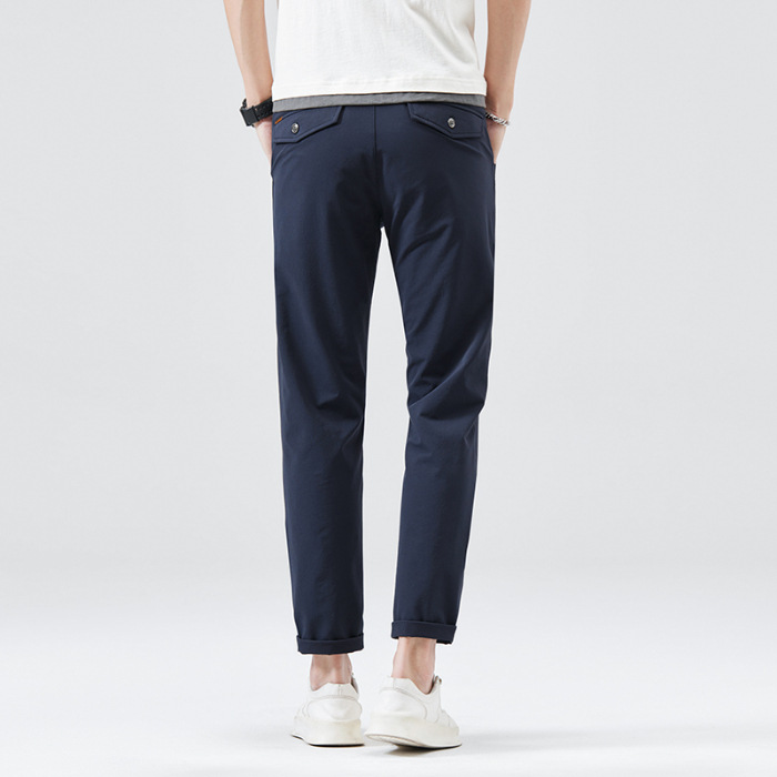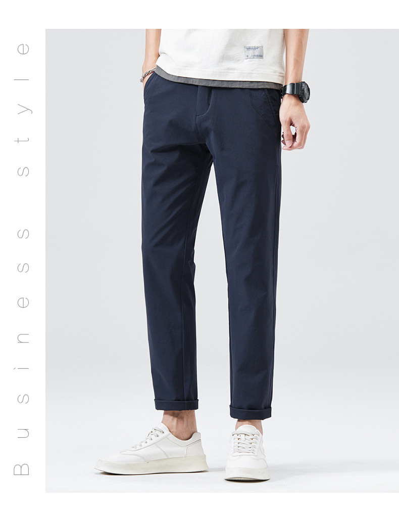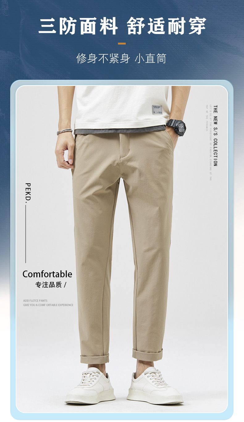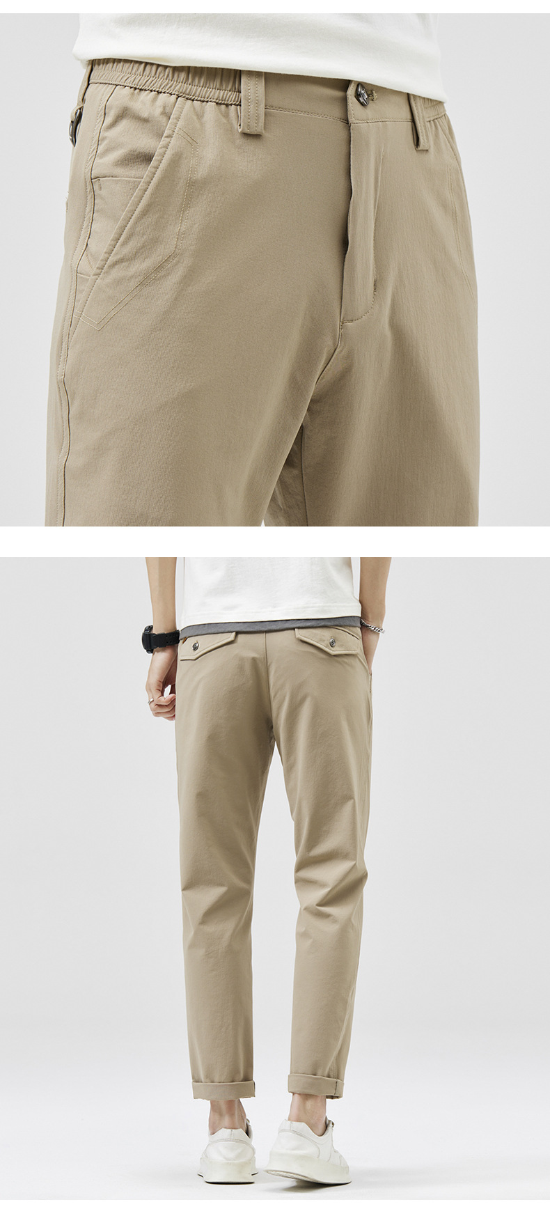 미색의 트렌디한 신상 남성용 라이트 비즈니스 캐주얼 팬츠 통기성과 신축성이 뛰어난 아이스 실크 소재