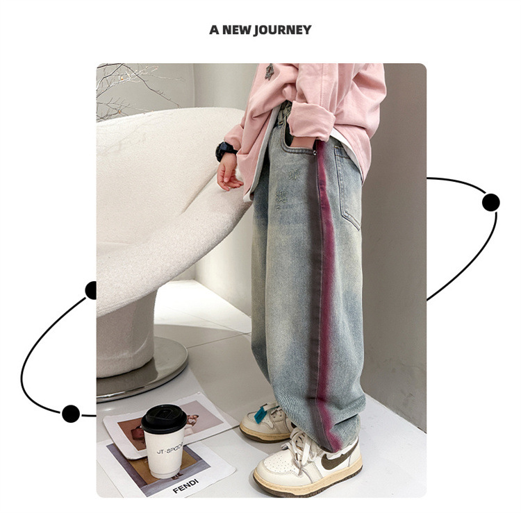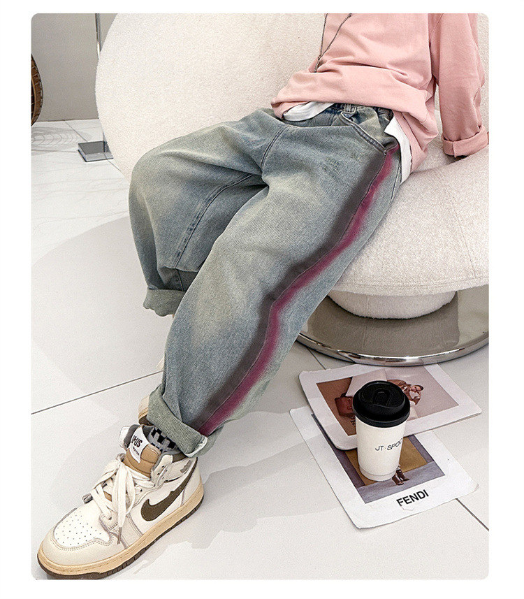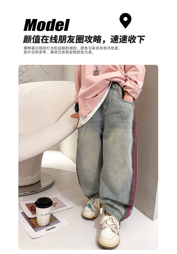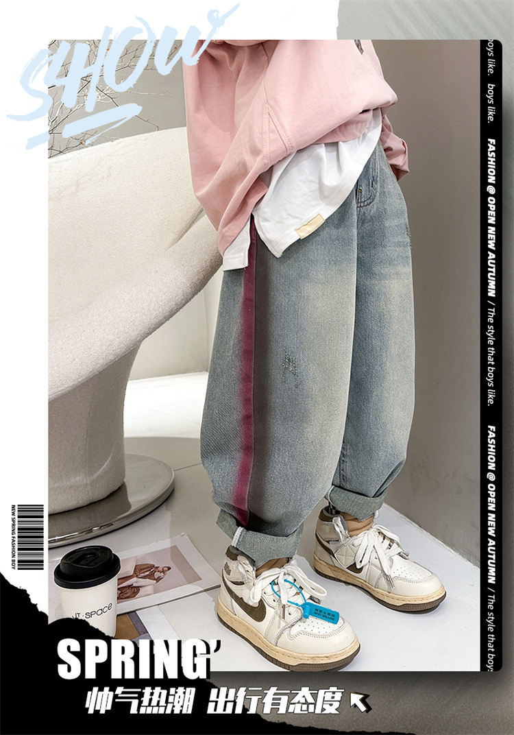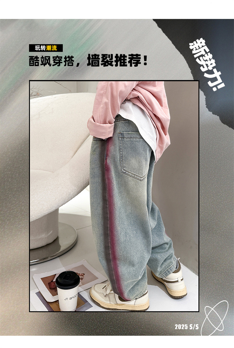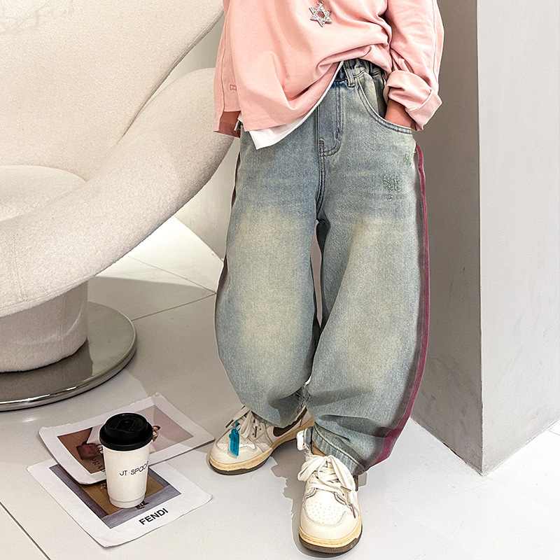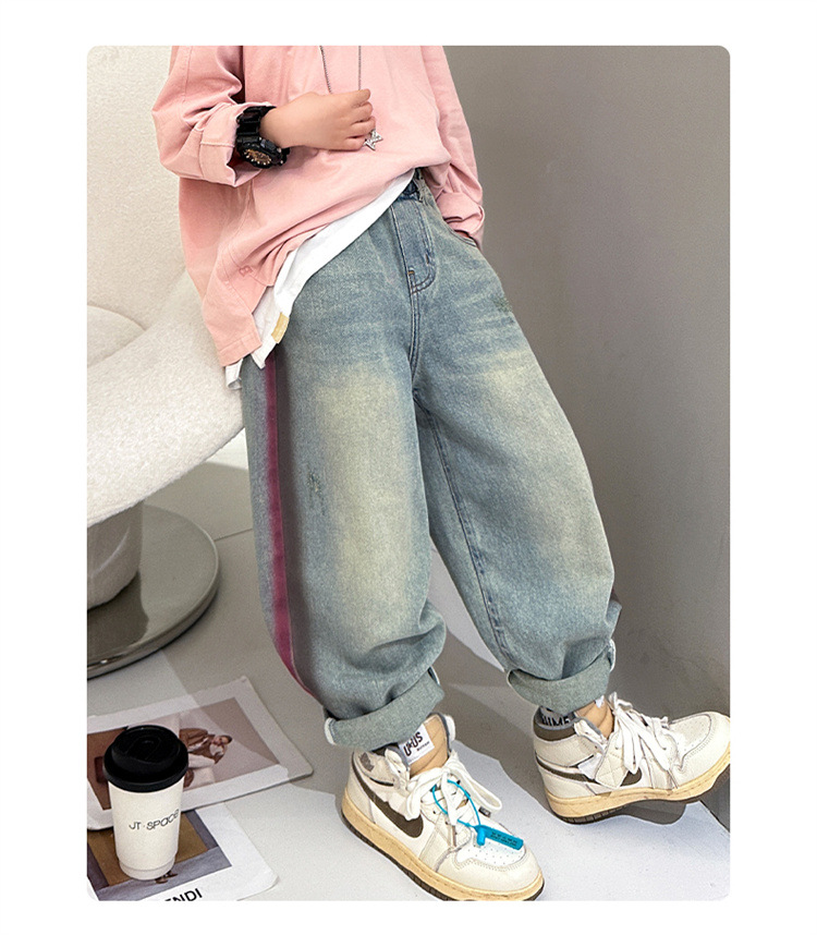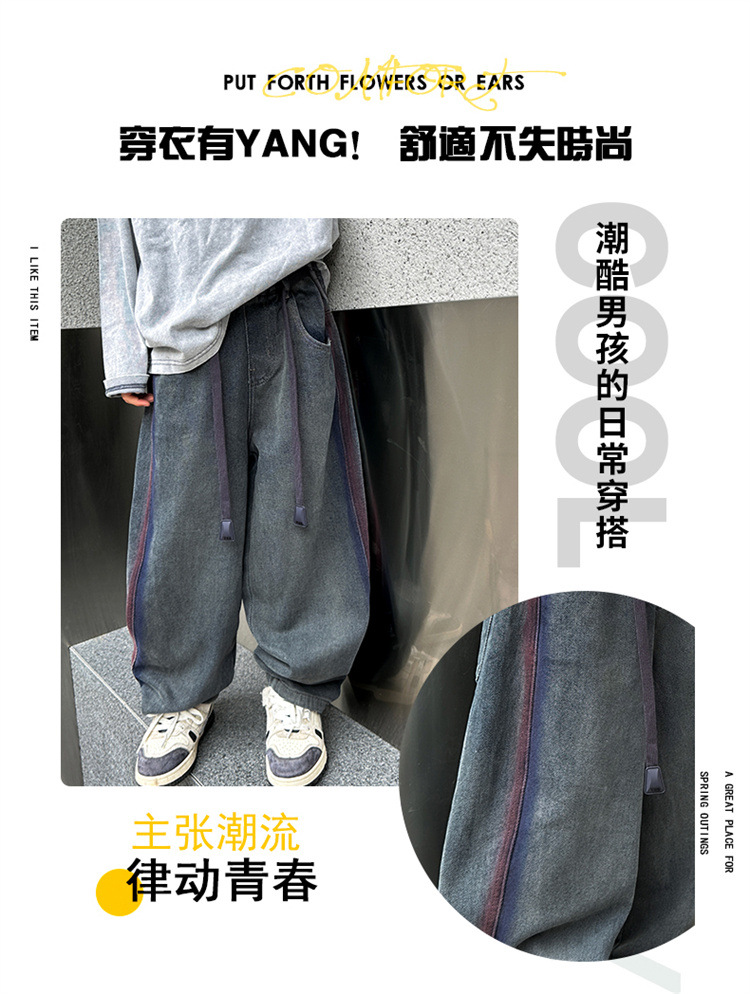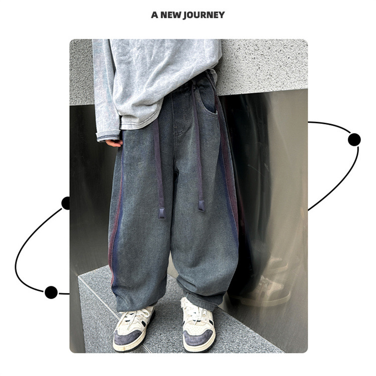 어린이 소년 봄 바지 2025 새로운 청바지 봄 중대형 어린이 캐주얼 봄 가을 소년 바지스토어 가기