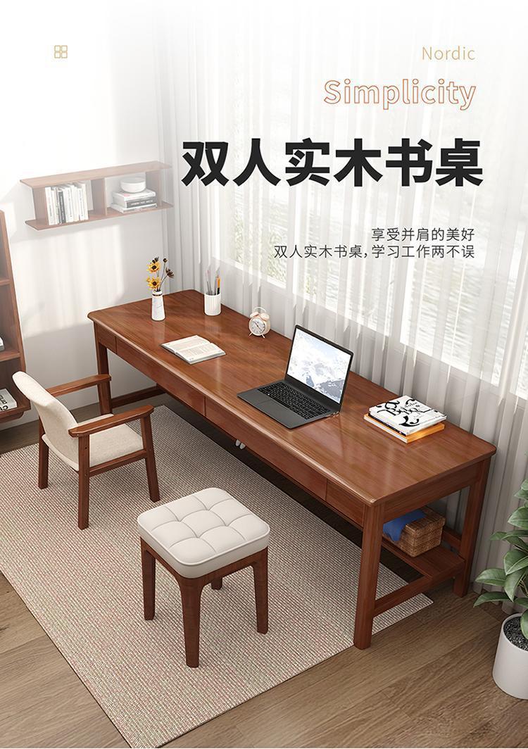 단단한 나무 책상 두 배 연구 테이블 간단한 현대 컴퓨터 책상 홈 중학교 쓰기 책상 사무실 책상 긴 테이블