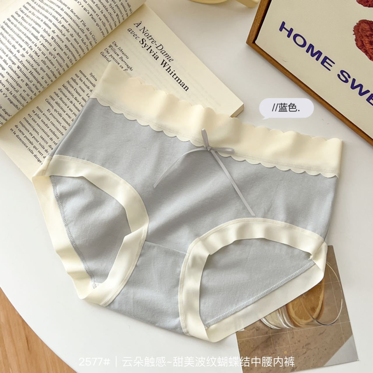 클라우드 터치 ~ 달콤한 리플 활 코튼 속옷 편안한 통기성 엉덩이 리프팅 소녀의 추적없는 중간 허리 속옷