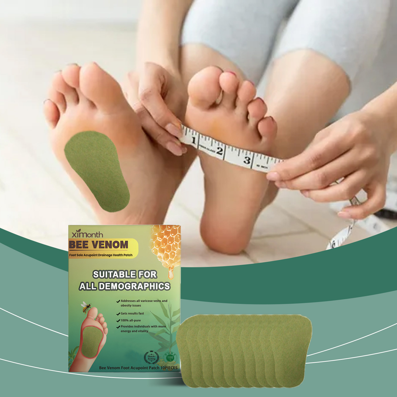 XIMONTH 꿀벌 독 발바닥 관리 패치 슬리밍 바디 성형 딥 클렌징 바디 단독 케어 발 패치