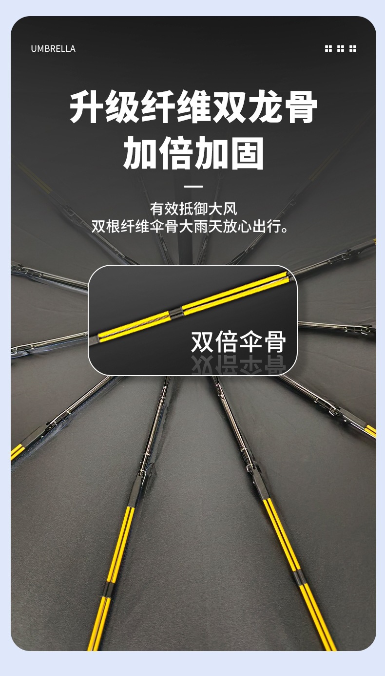 • 12본 이중본 자동 검정색 플라스틱 우산 - 우통 쌀