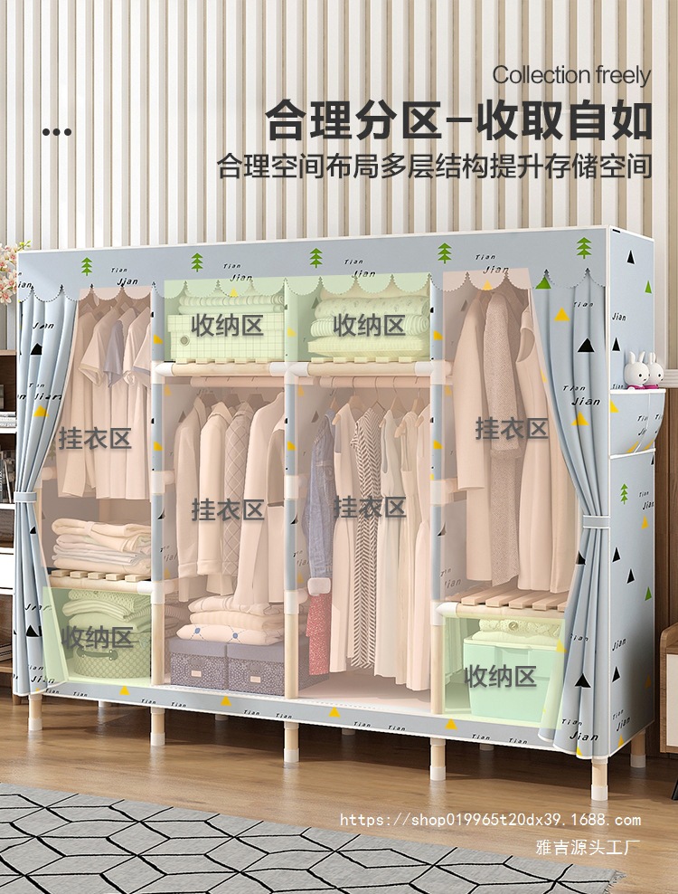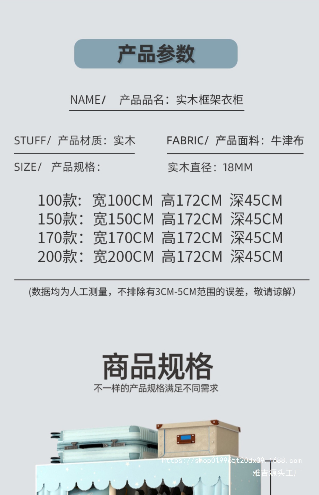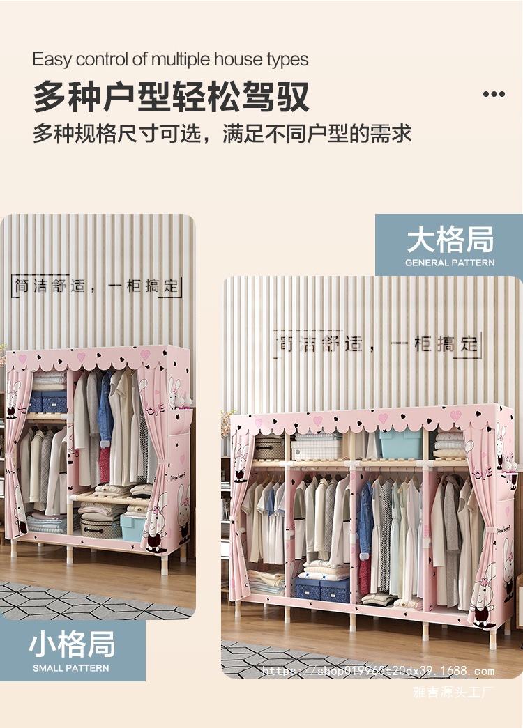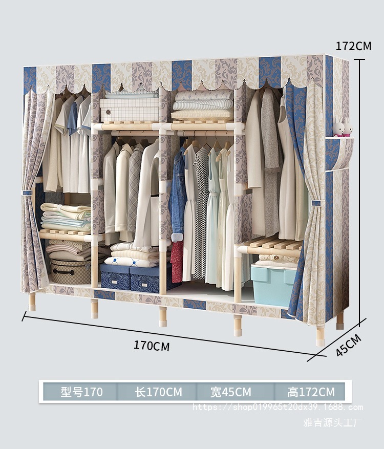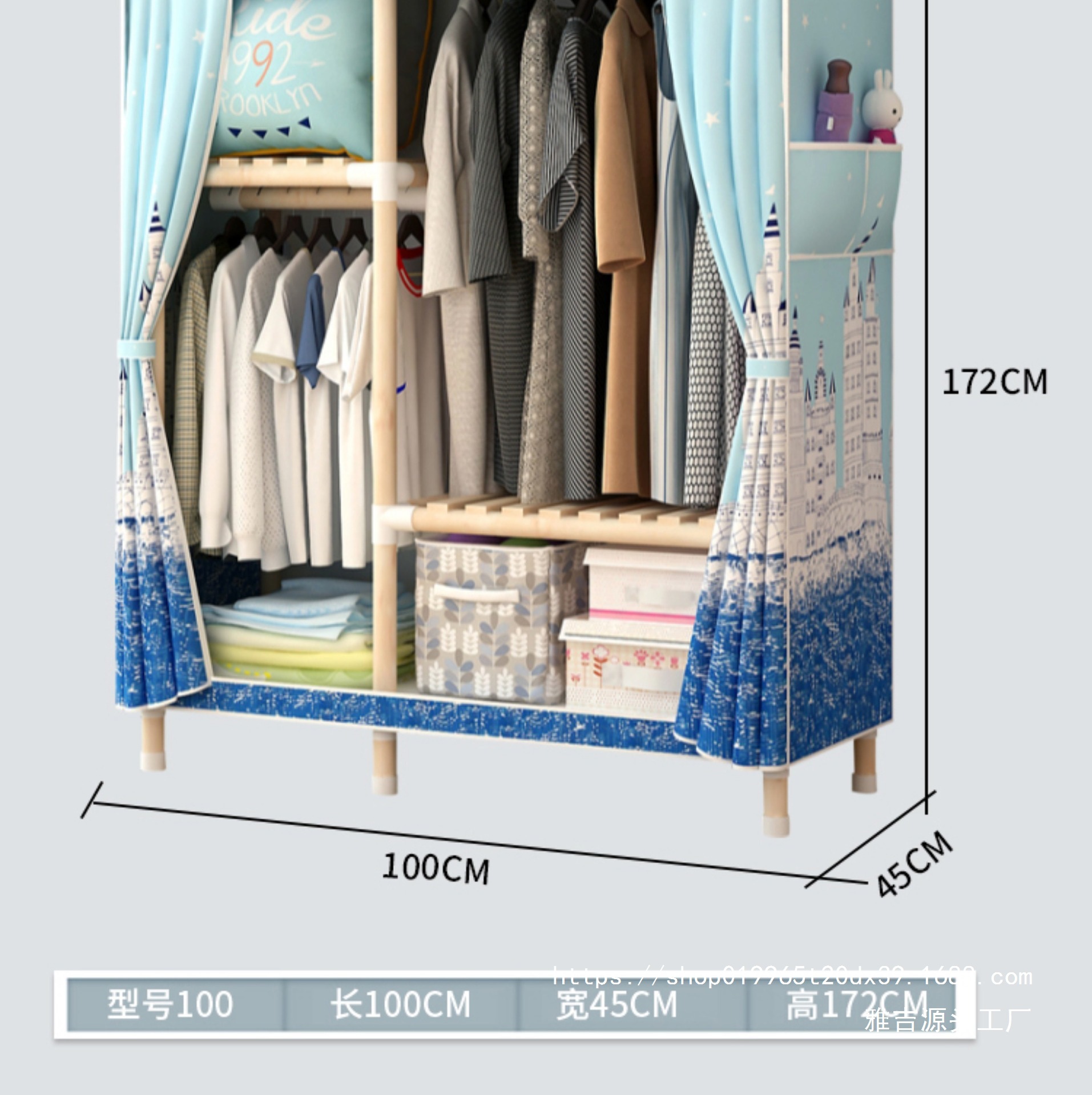 임대 룸 솔리드 우드 천 캐비닛 가정용 침실 옥스포드 천 옷장 옷걸이를위한 간단한 천 옷장 조립스토어 가기