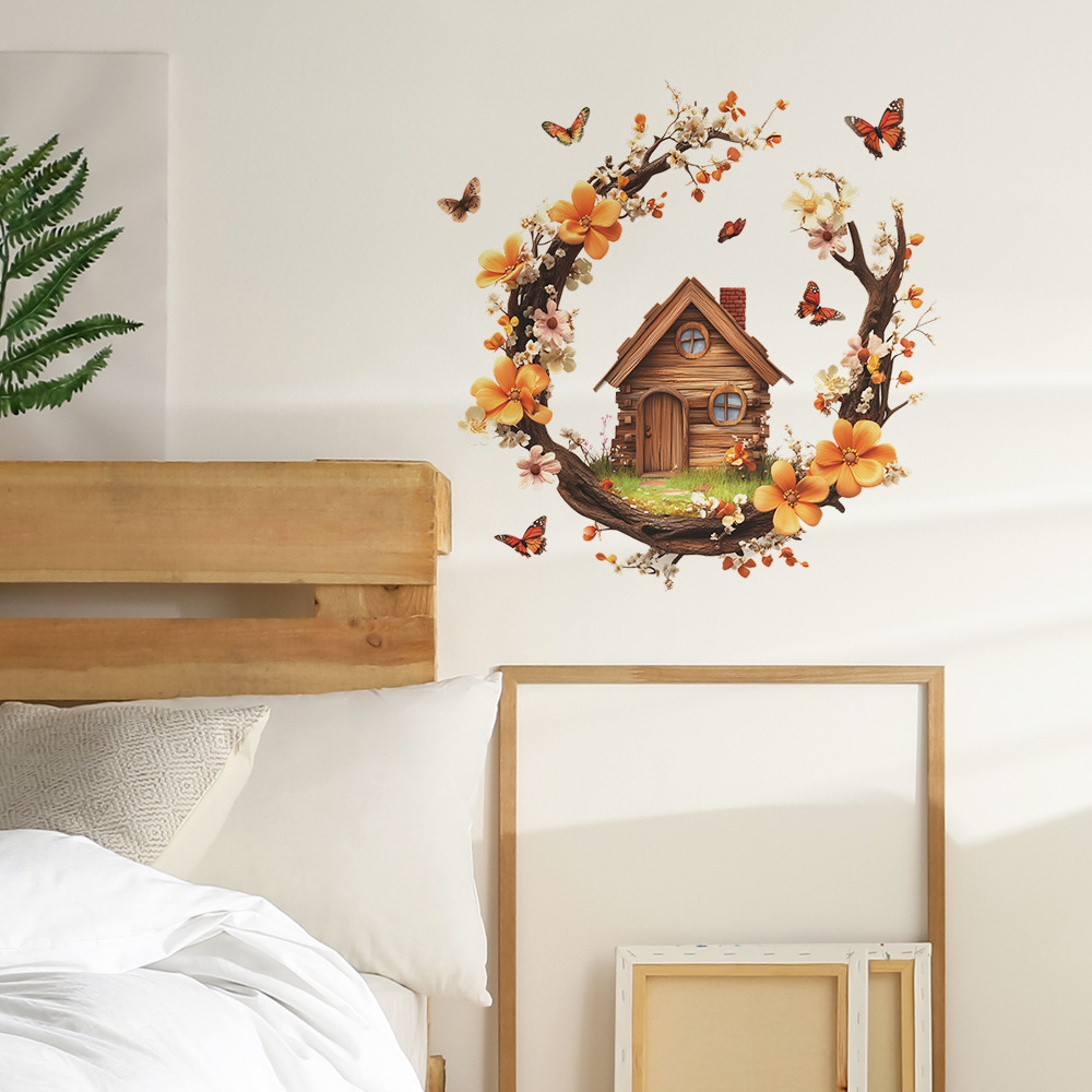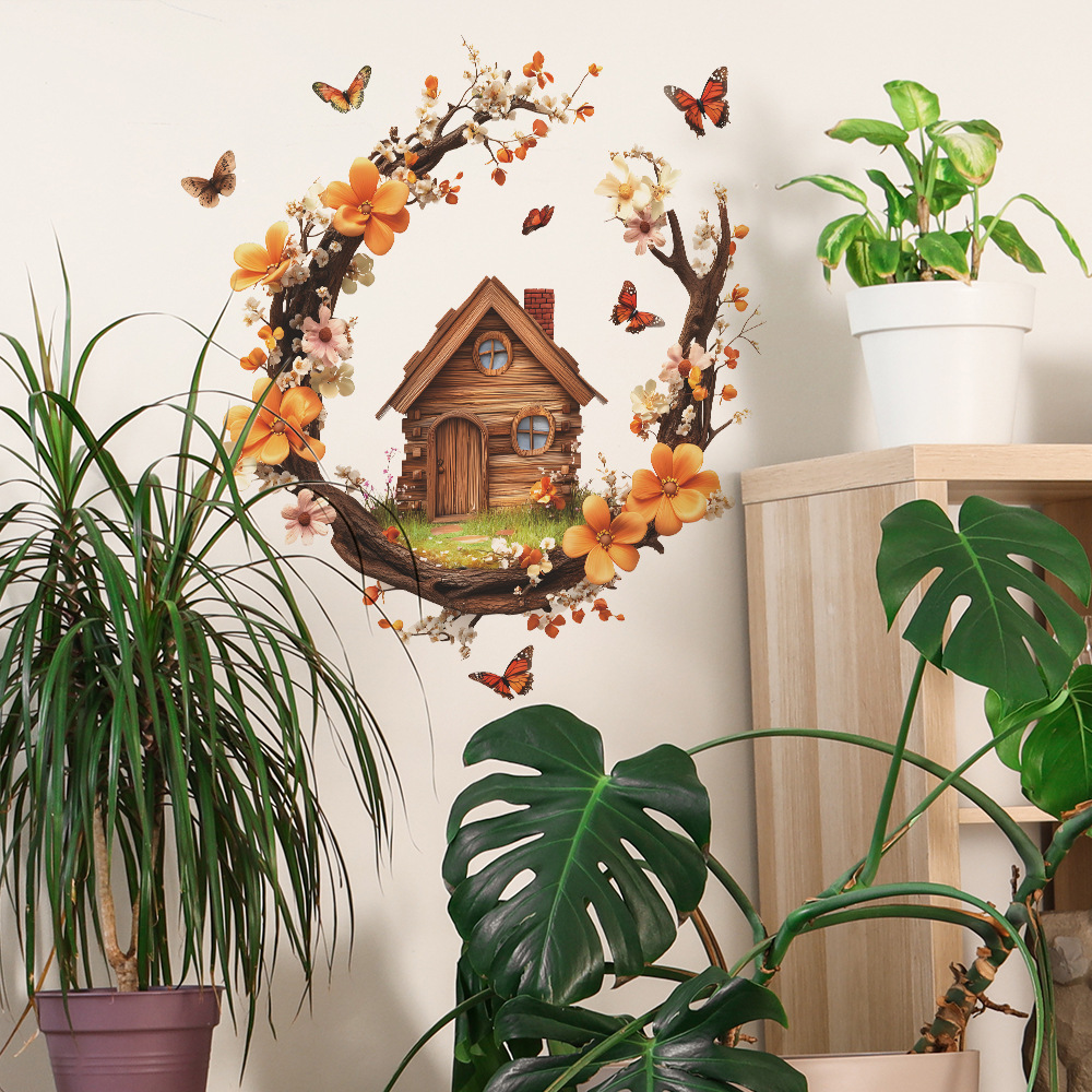 Fun-f538 대외 무역 만화 오두막 나비 침실 거실 집 벽 배경 미화 장식 벽 스티커 도매
