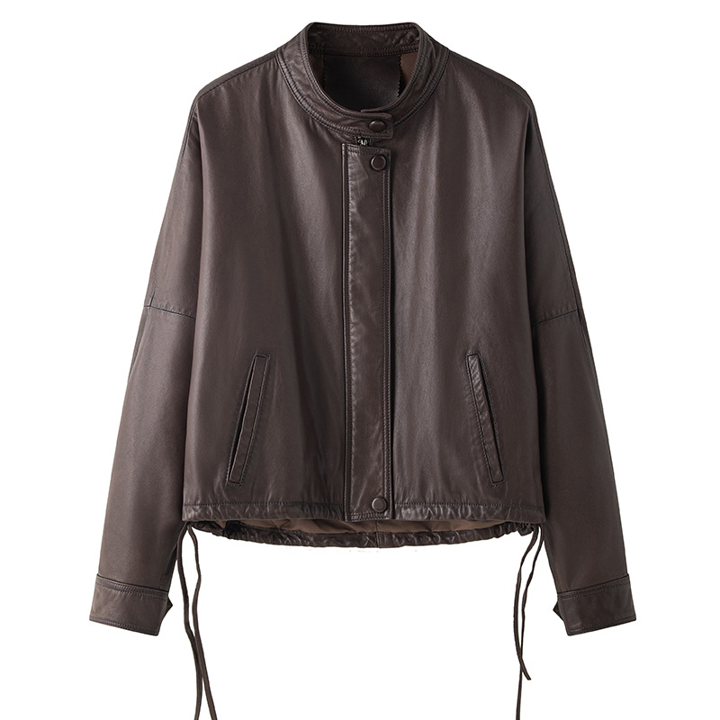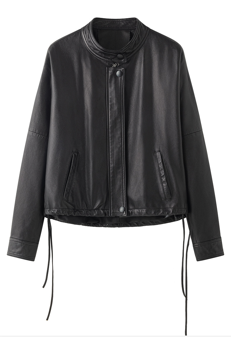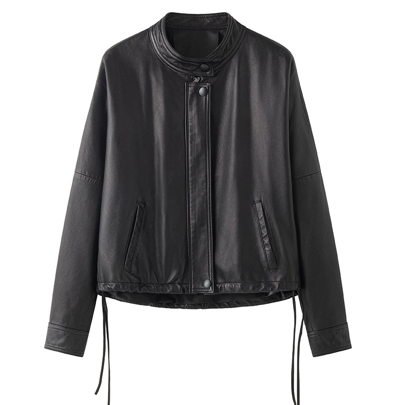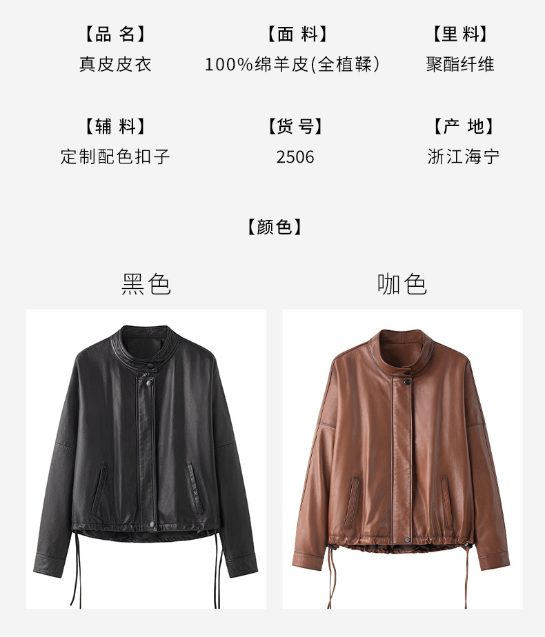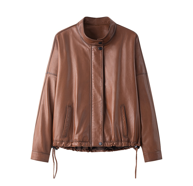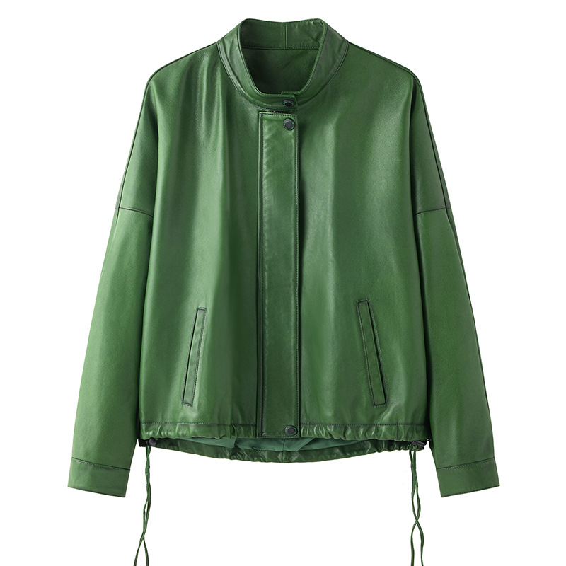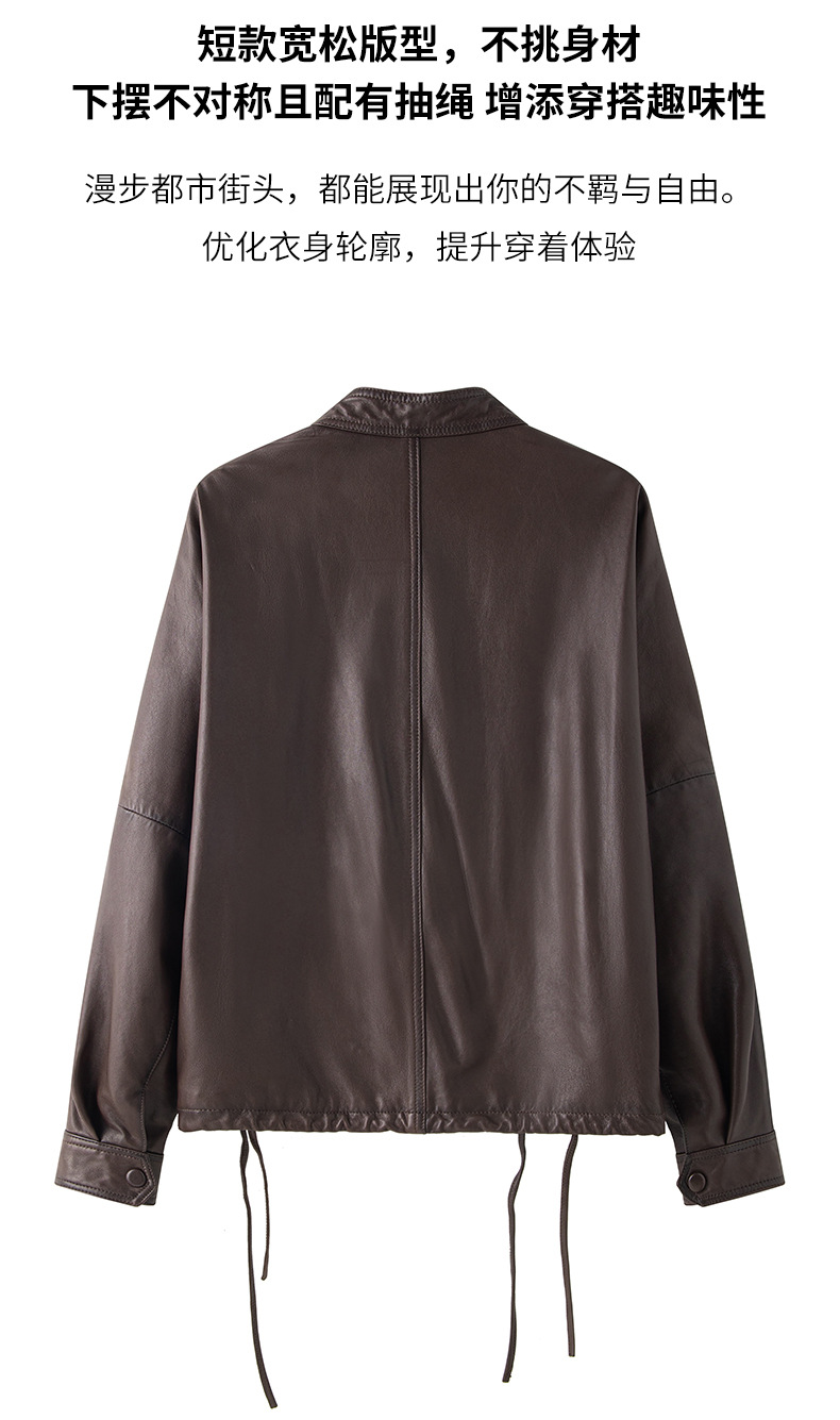 Haining 2025 봄과 가을 새로운 정품 가죽 여성의 느슨한 캐주얼 양가죽 코트 작은 유행 재킷