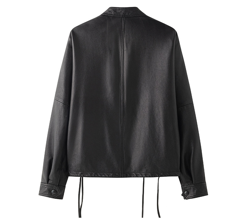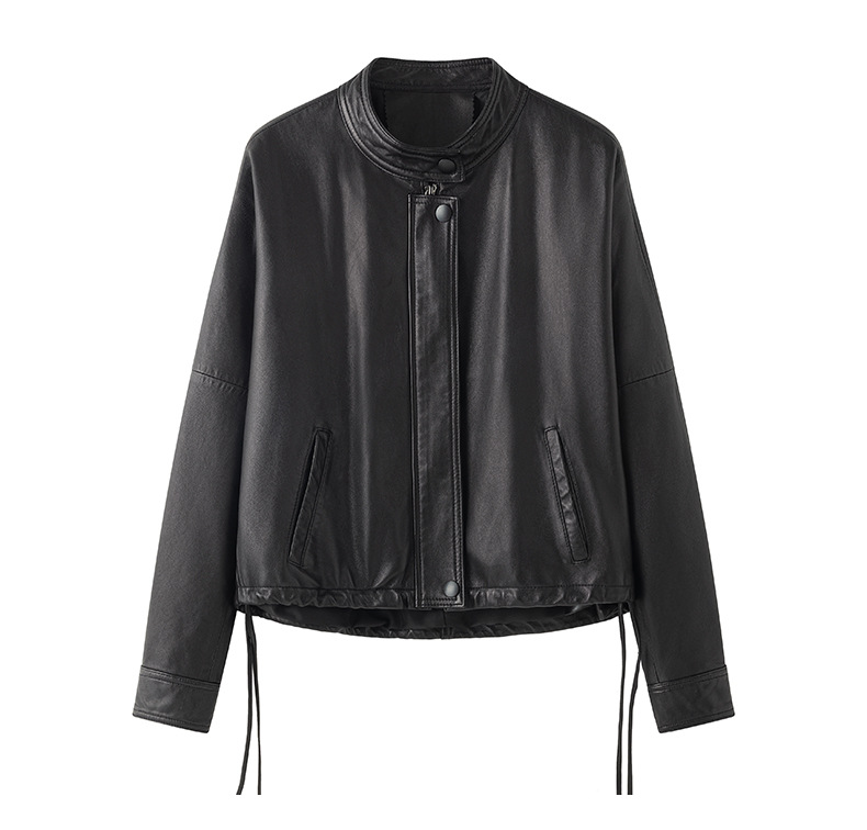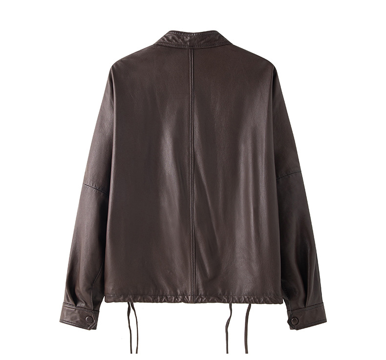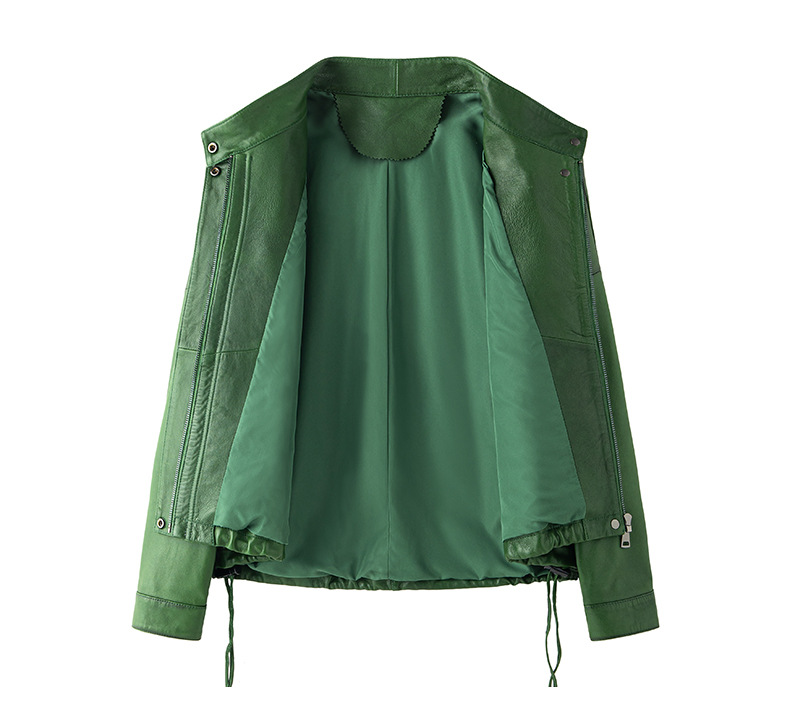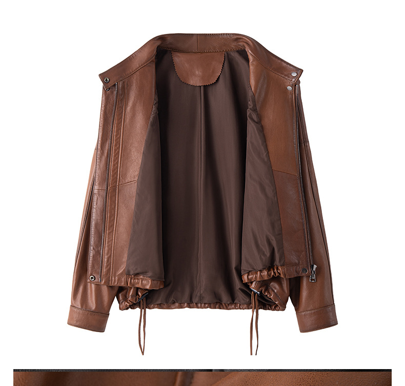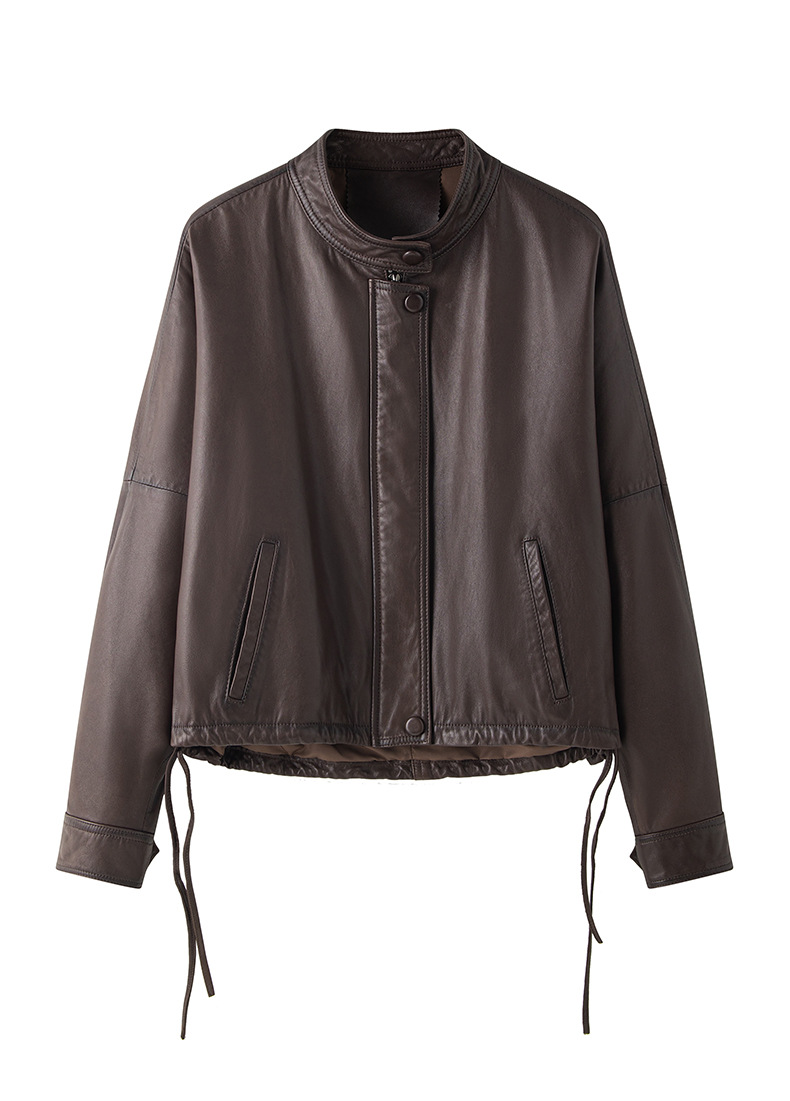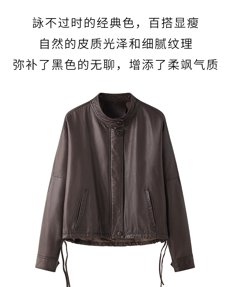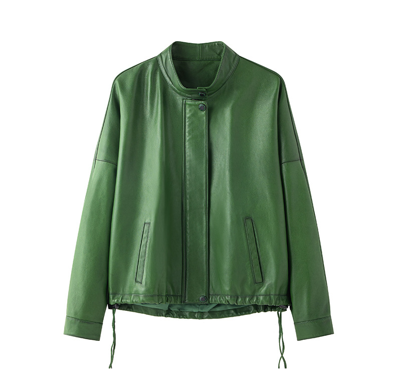 Haining 2025 봄과 가을 새로운 정품 가죽 여성의 느슨한 캐주얼 양가죽 코트 작은 유행 재킷