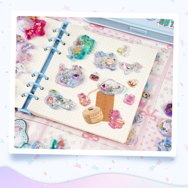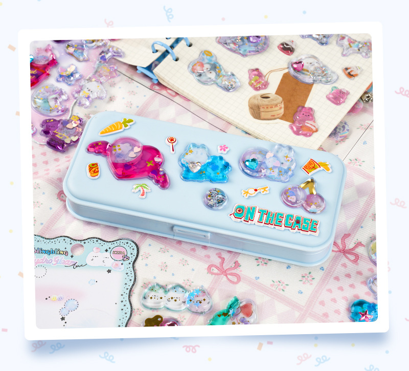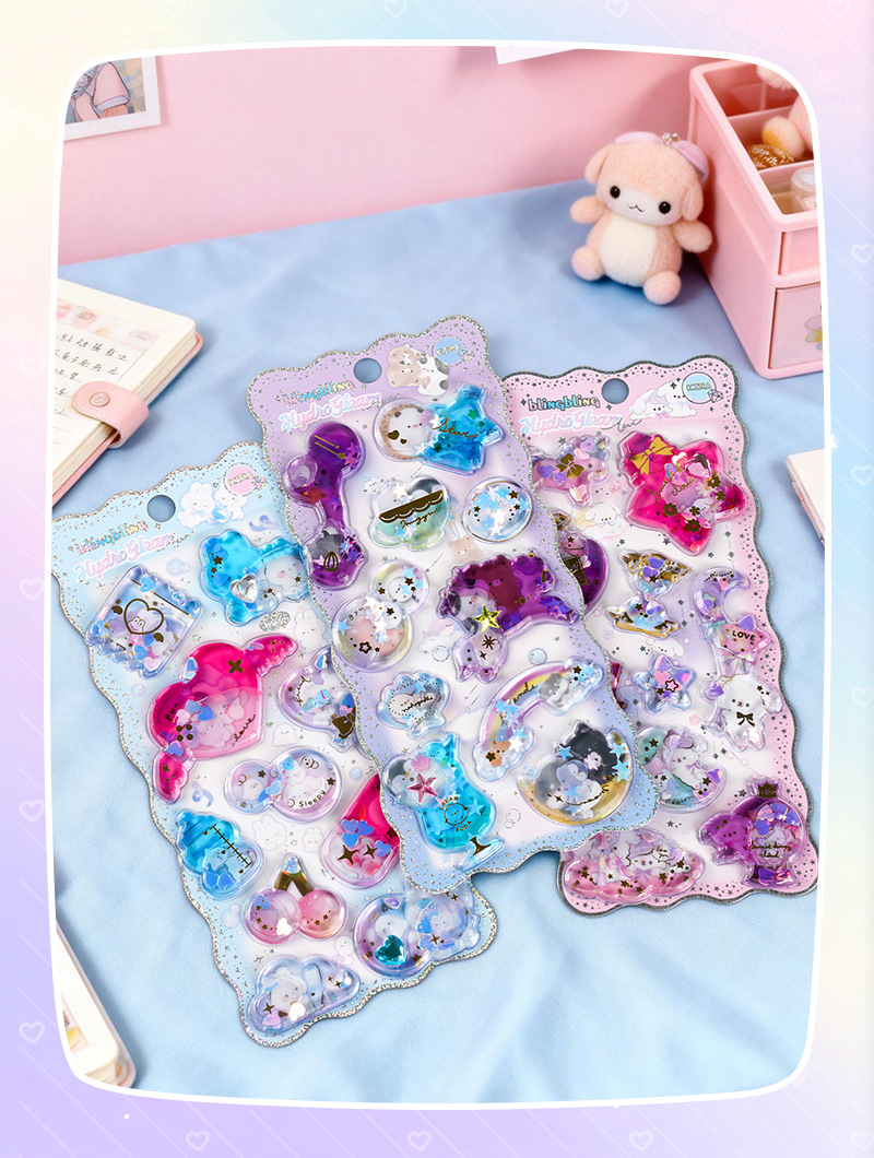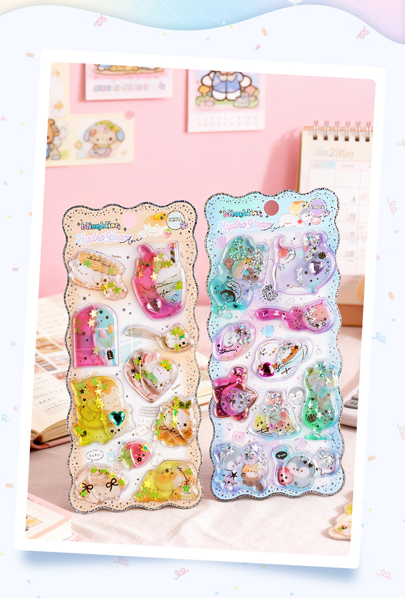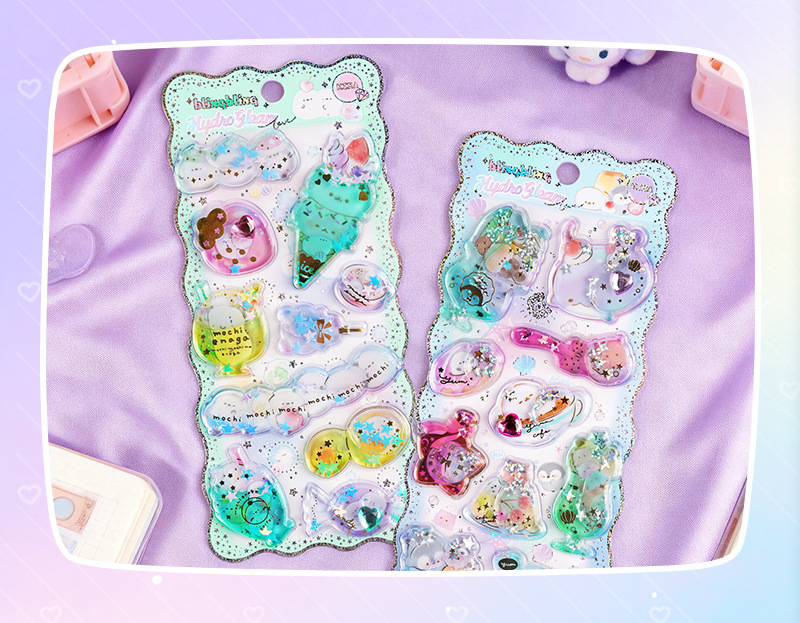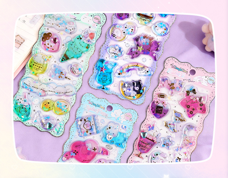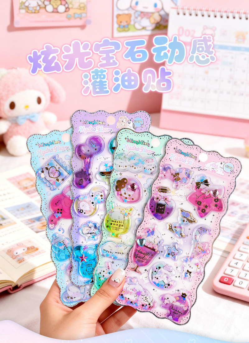 빛나는 음악 어린이 만화 눈부시게 보석 동적 오일 붓기 스티커 3D 스테레오 빛나는 쉐이크 워터 붓기 스티커 속편 상