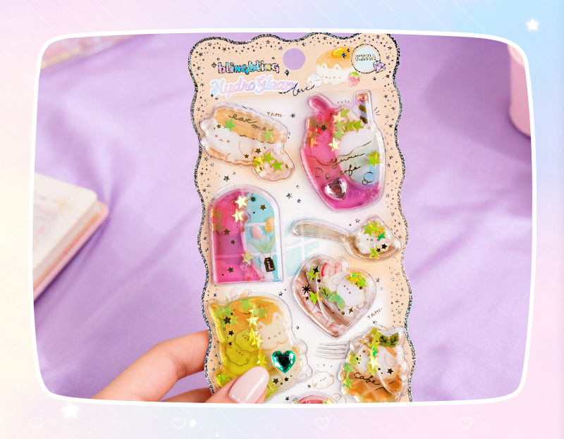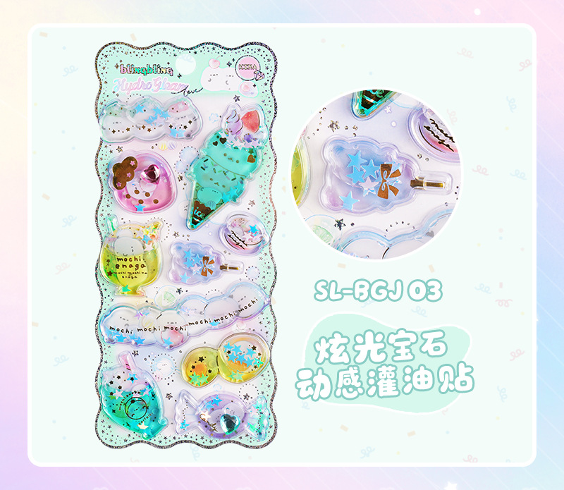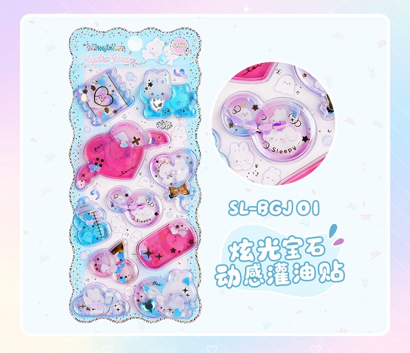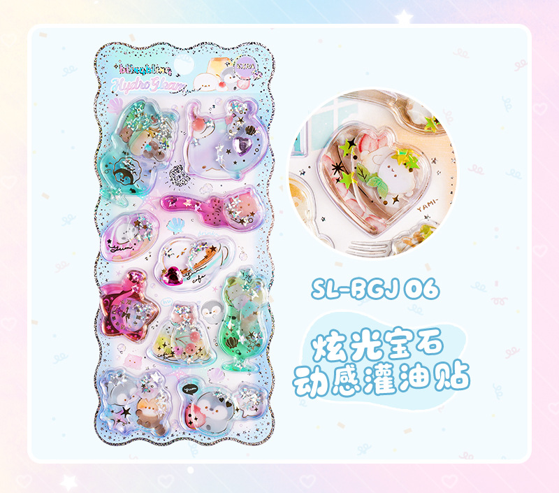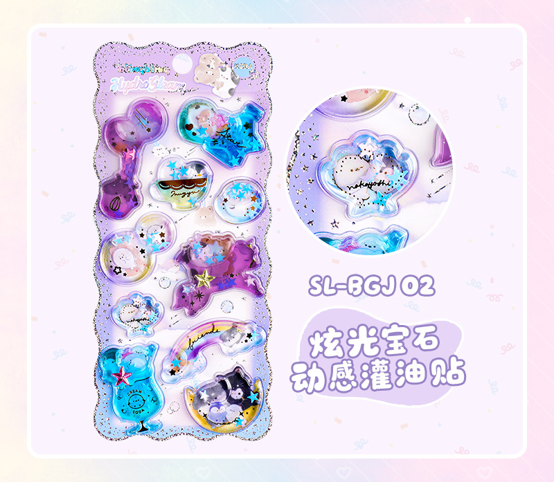 빛나는 음악 어린이 만화 눈부시게 보석 동적 오일 붓기 스티커 3D 스테레오 빛나는 쉐이크 워터 붓기 스티커 속편 상스토어 가기