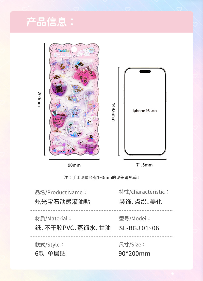 • SL-BGJ 눈부신 보석 오일 충전 스티커 무작위 1개 [6의 배수 평균 촬영]
