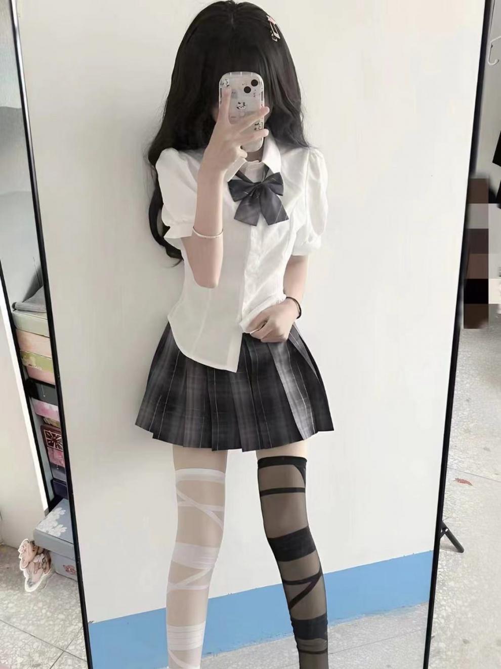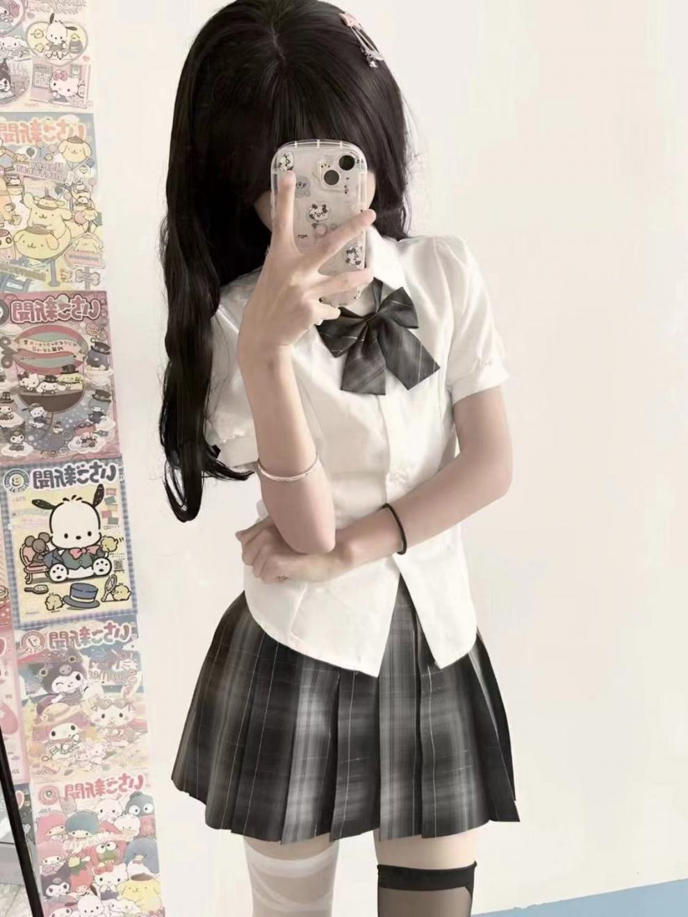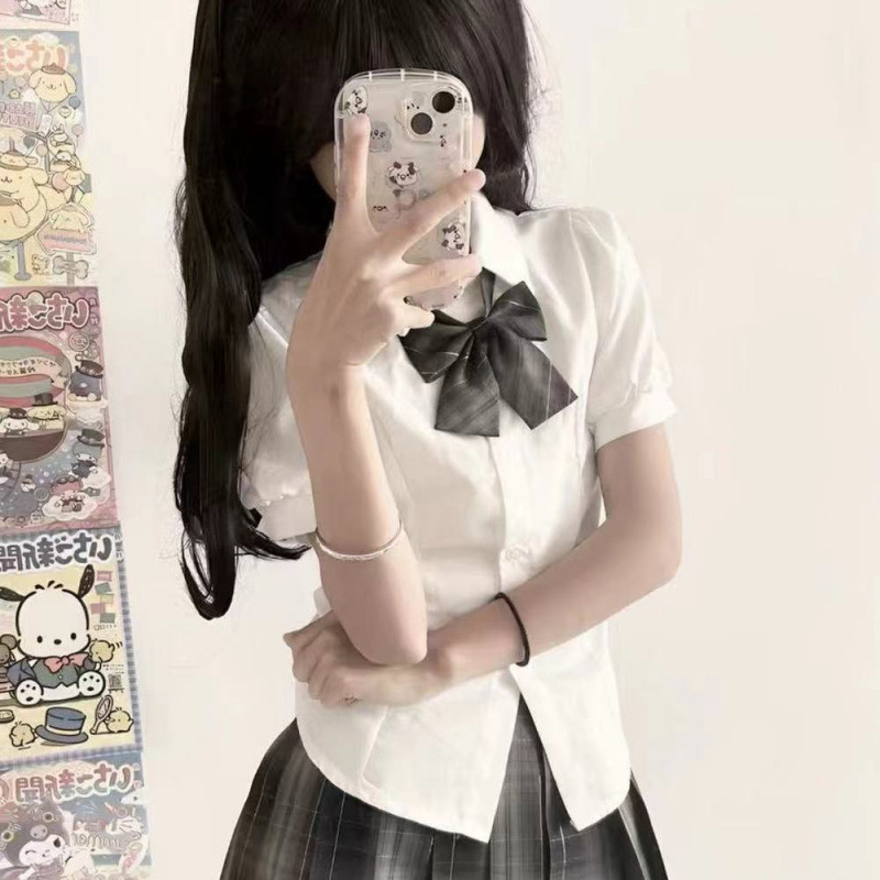 슬림 핏 슬림 퍼프 소매 순수한 욕망 스타일 일본 스타일 대학 스타일 셔츠 여성용 JK 유니폼 원피스 세트 짧은 소매 허리 셔츠스토어 가기