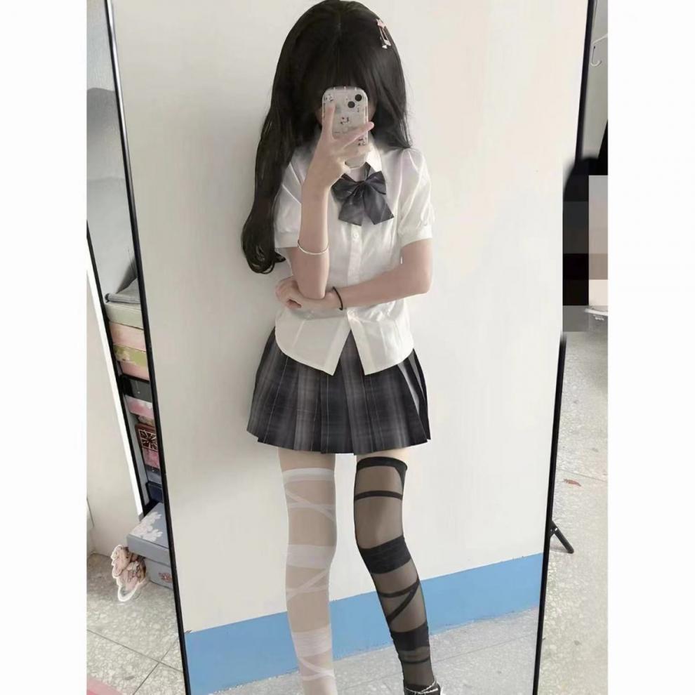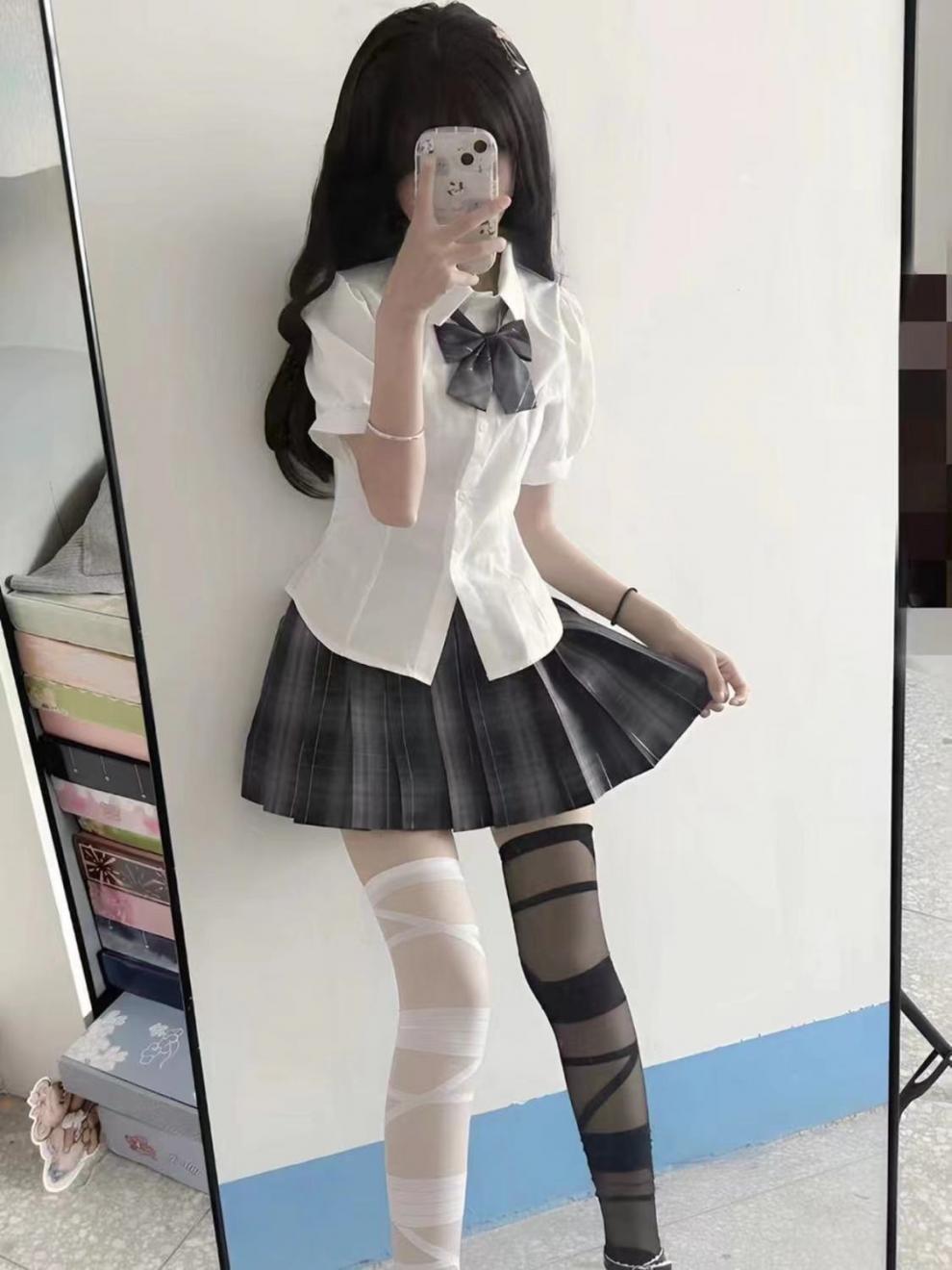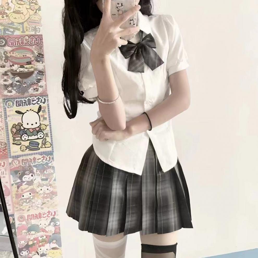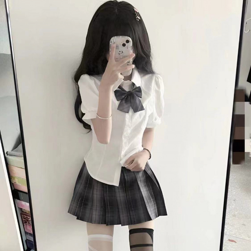 슬림 핏 슬림 퍼프 소매 순수한 욕망 스타일 일본 스타일 대학 스타일 셔츠 여성용 JK 유니폼 원피스 세트 짧은 소매 허리 셔츠