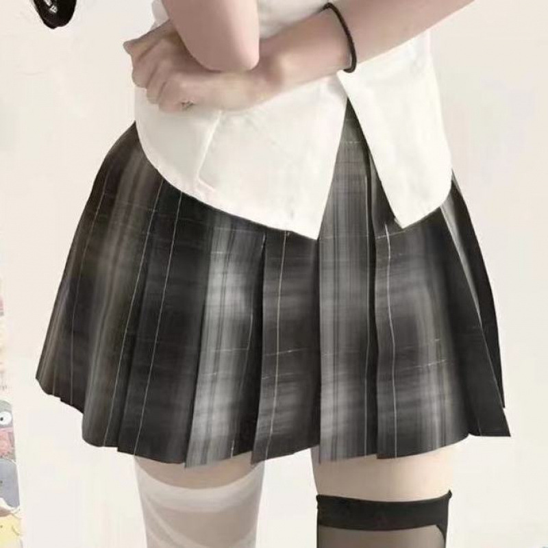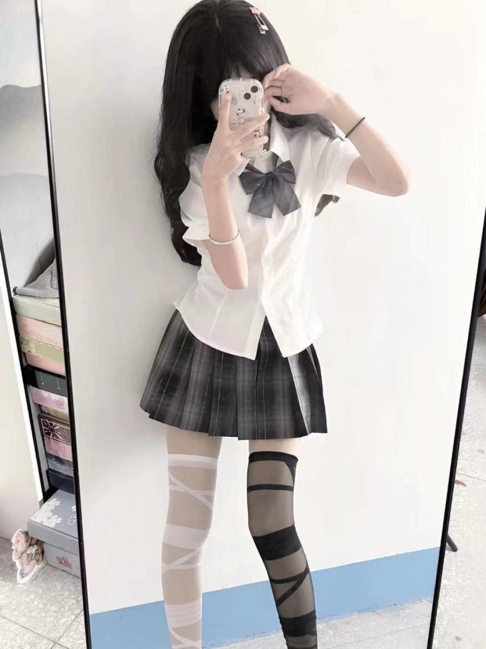 • 화이트 웨이스트 셔츠+나비넥타이+차콜그레이 체크 스커트 3종세트