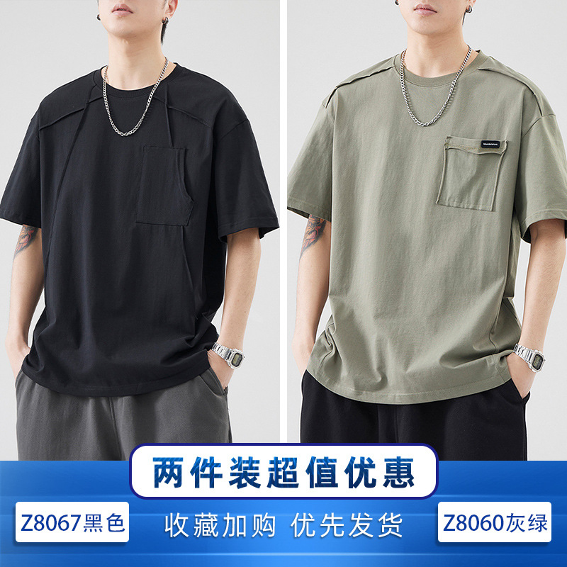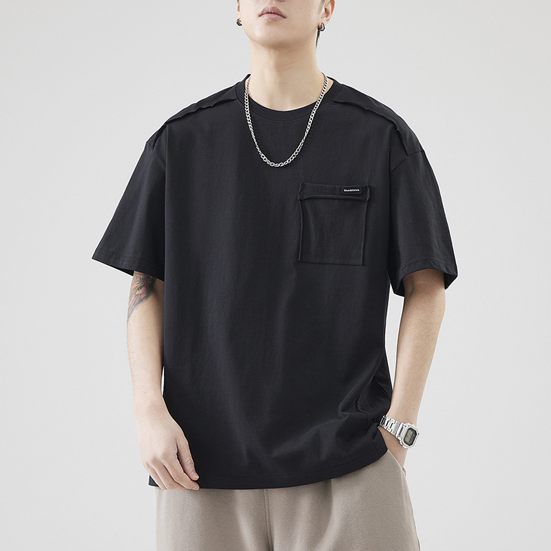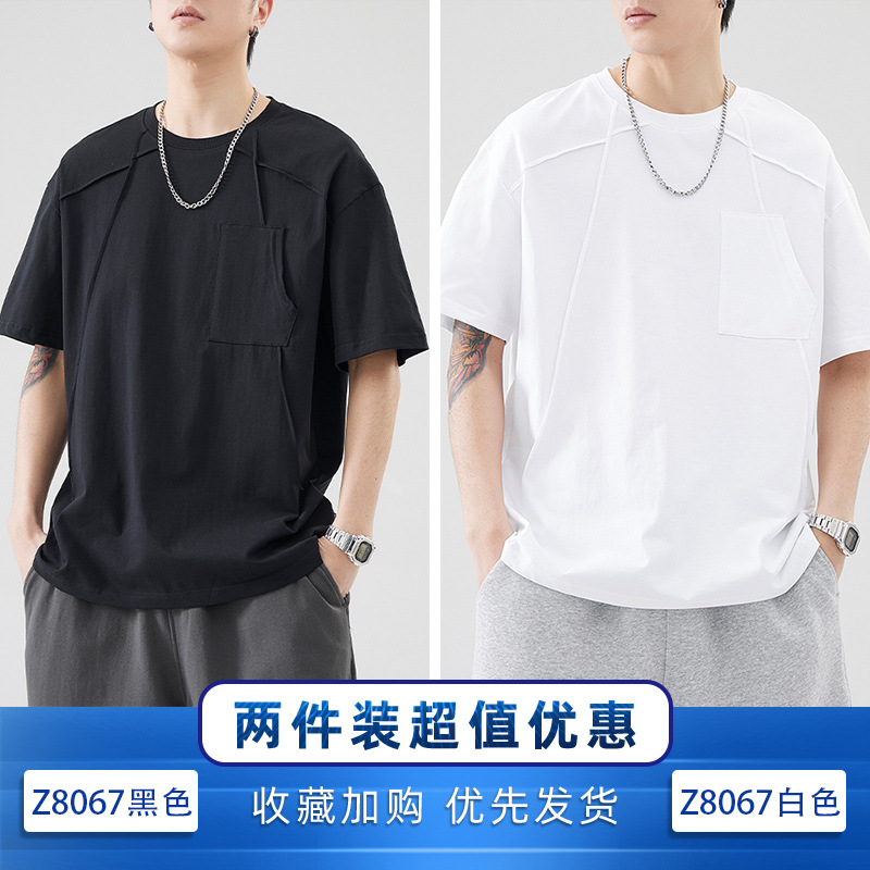 아메리칸 스타일 블랙 반팔 티셔츠 남성용 여름 틈새 디자인 센스 반소매 2025 뉴 남성용 탑 보이즈 티셔츠스토어 가기