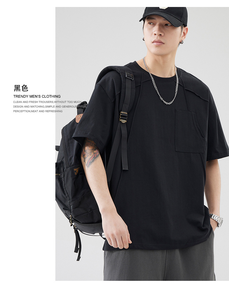 아메리칸 스타일 블랙 반팔 티셔츠 남성용 여름 틈새 디자인 센스 반소매 2025 뉴 남성용 탑 보이즈 티셔츠