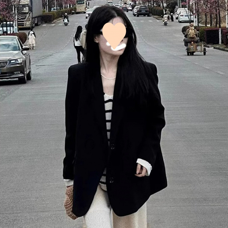 검은 세트 재킷 여성의 봄과 가을 캐주얼 느슨한 프로필 세트 슬리밍 올 매치 대학 스타일 여성