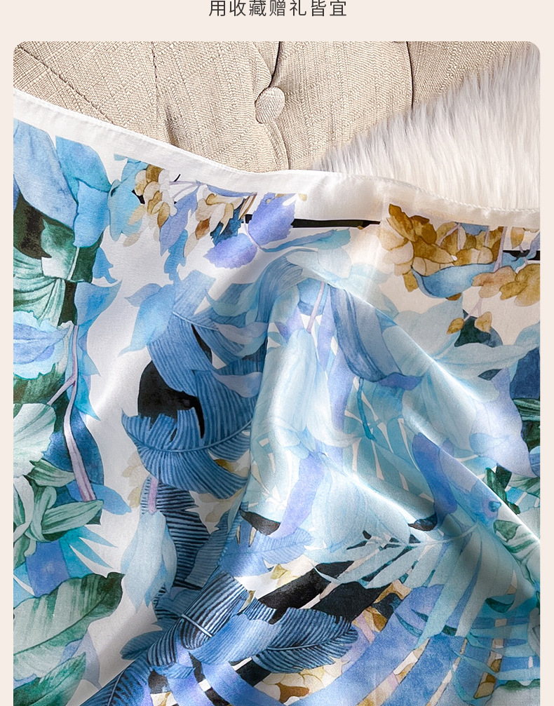 70 블루 플로랄 100 실크 스카프 중소 스퀘어 스카프 여성의 얇은 실크 스카프 목 보호 스카프 올매치 목도리