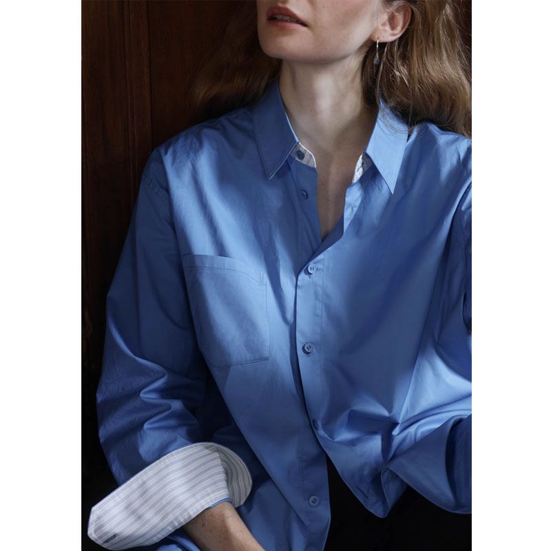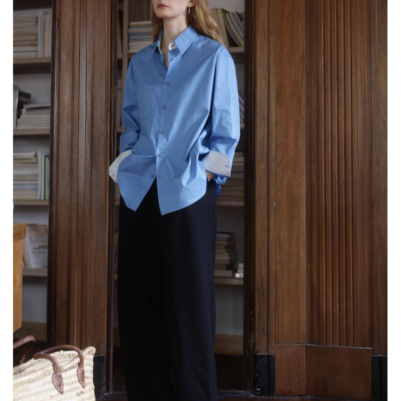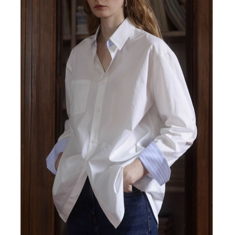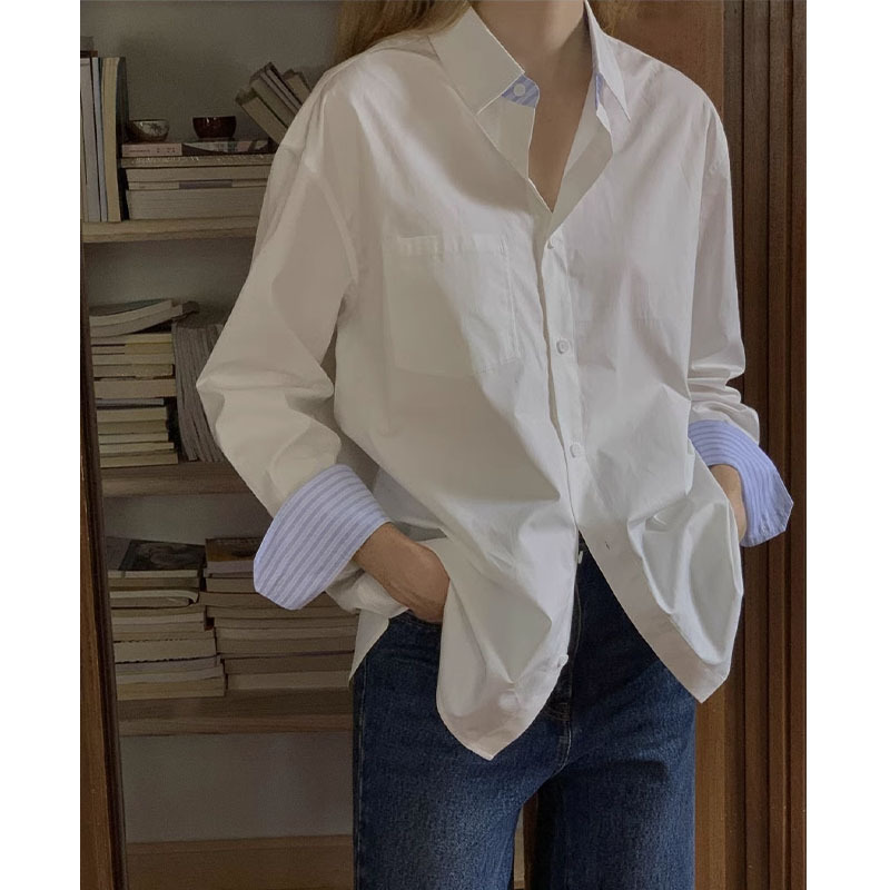 대조적 인 컬러 스트라이프 긴팔 셔츠 여성용 가을 새로운 프랑스 스타일 복고풍 쌓인 느슨한 캐주얼 셔츠 올매치 슬림 핏스토어 가기