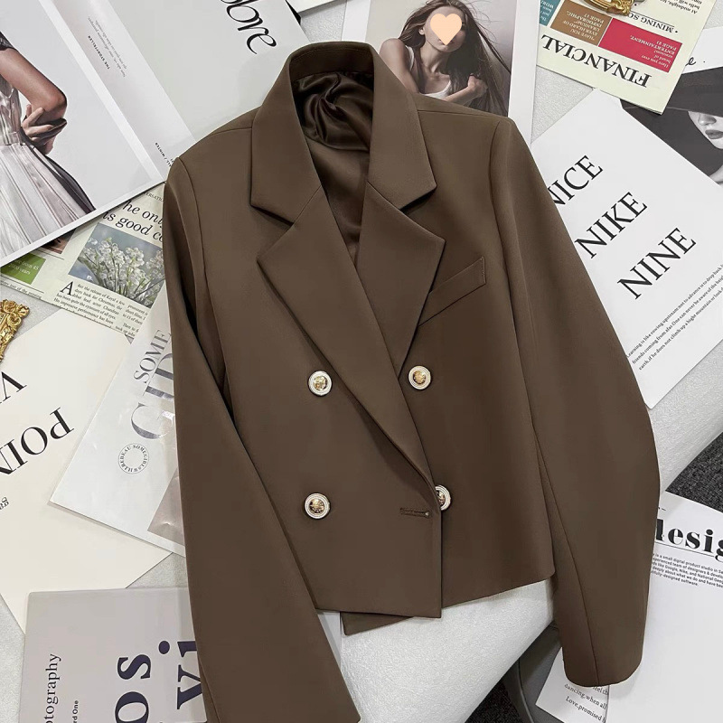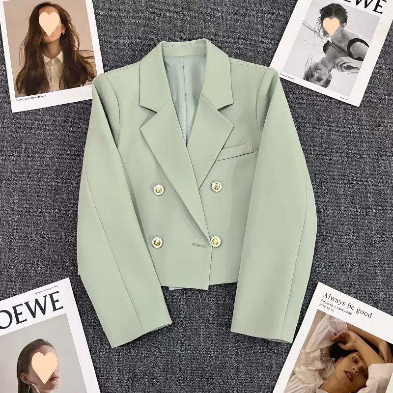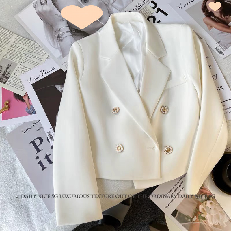 2024 봄과 가을 새로운 샤넬 스타일 더블 브레스트 솔리드 컬러 올 매치 짧은 긴팔 작은 세트 재킷 여성의 우아한 세트