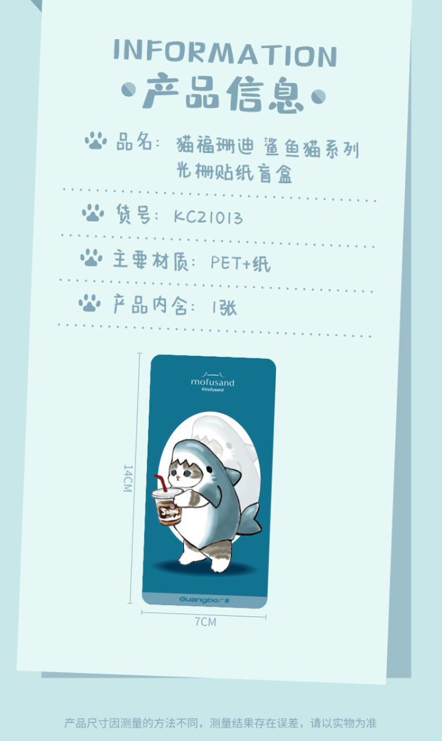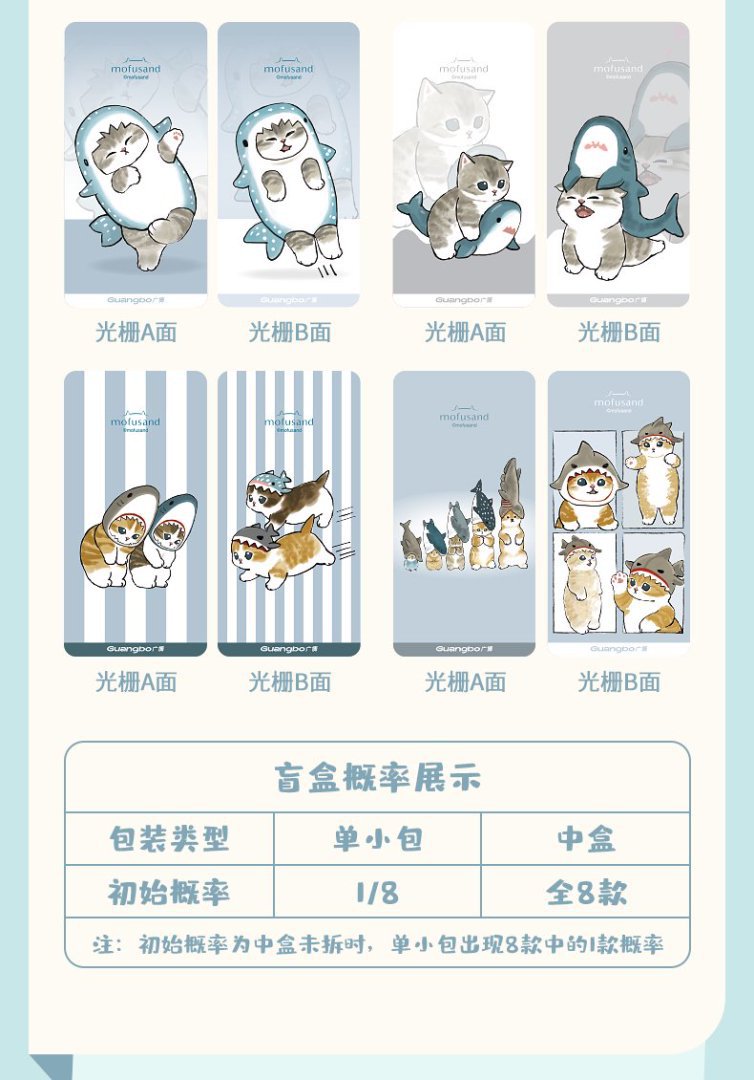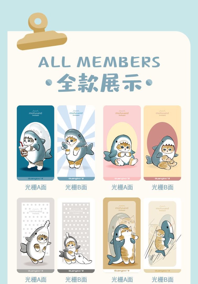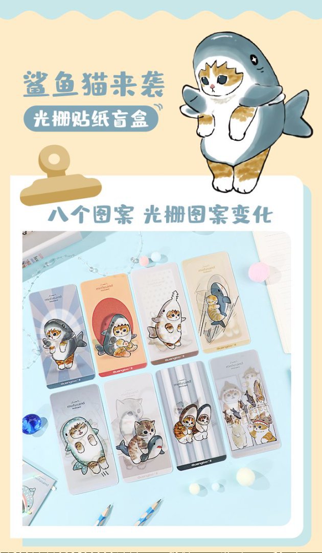 광보 문구 정품 고양이 Fusandi 상어 고양이 시리즈 격자 스티커 블라인드 가방 창조적 인 귀여운 장식 스티커스토어 가기