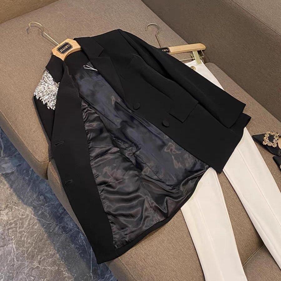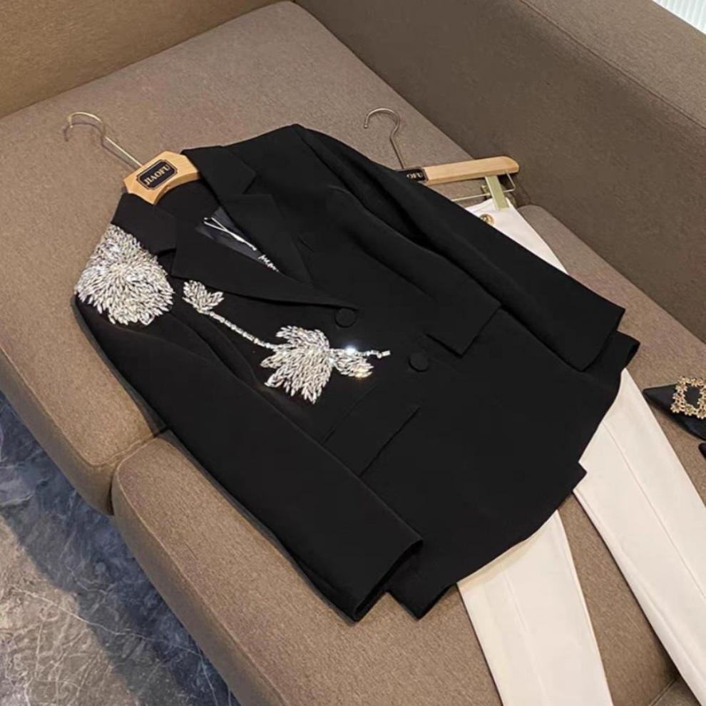 기질 중공업 높은 패션 꽃 바느질 느슨한 슬림 우아한 세트 재킷 여성 Tiktok 스타 같은 스타일의 불