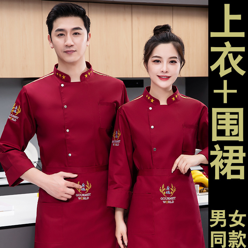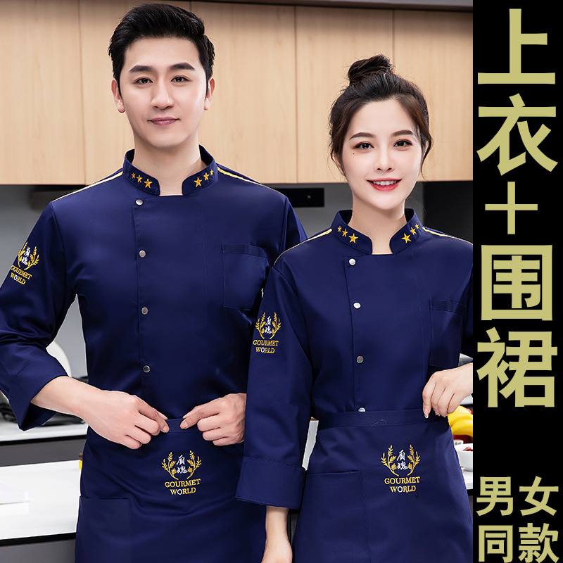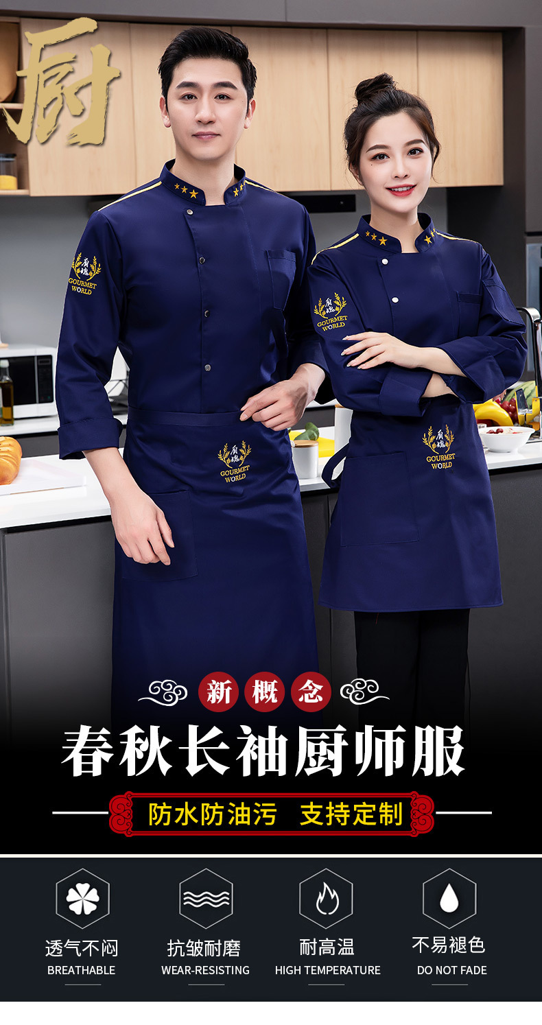 새로운 방수 및 오일 방지 요리사 작업 옷 긴 소매 남성 호텔 레스토랑 매점 주방 직원 플러스 사이즈 의류 사용자 정의스토어 가기