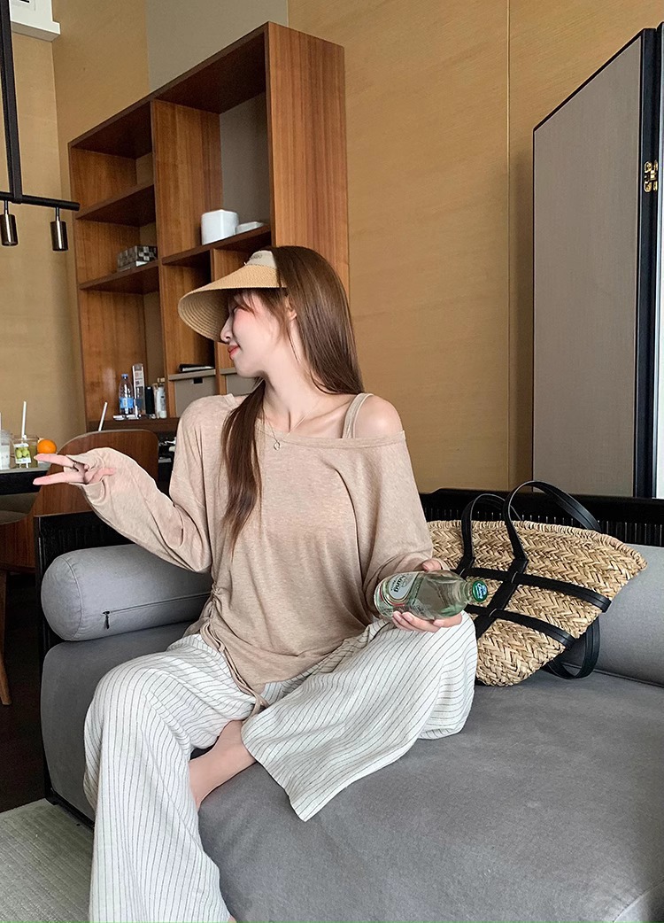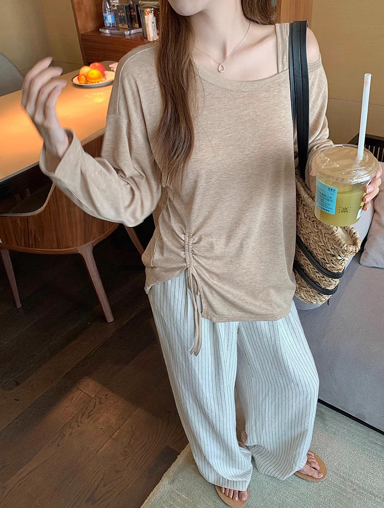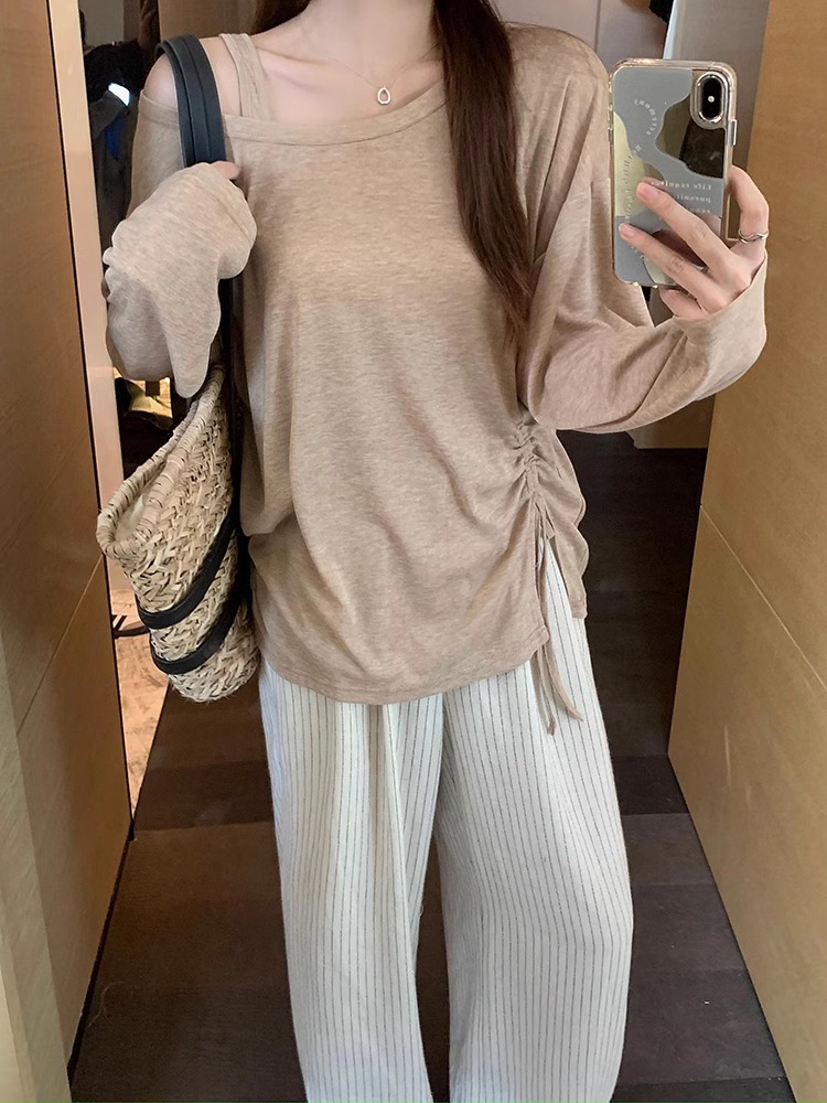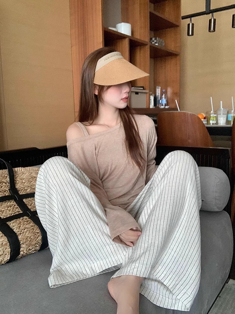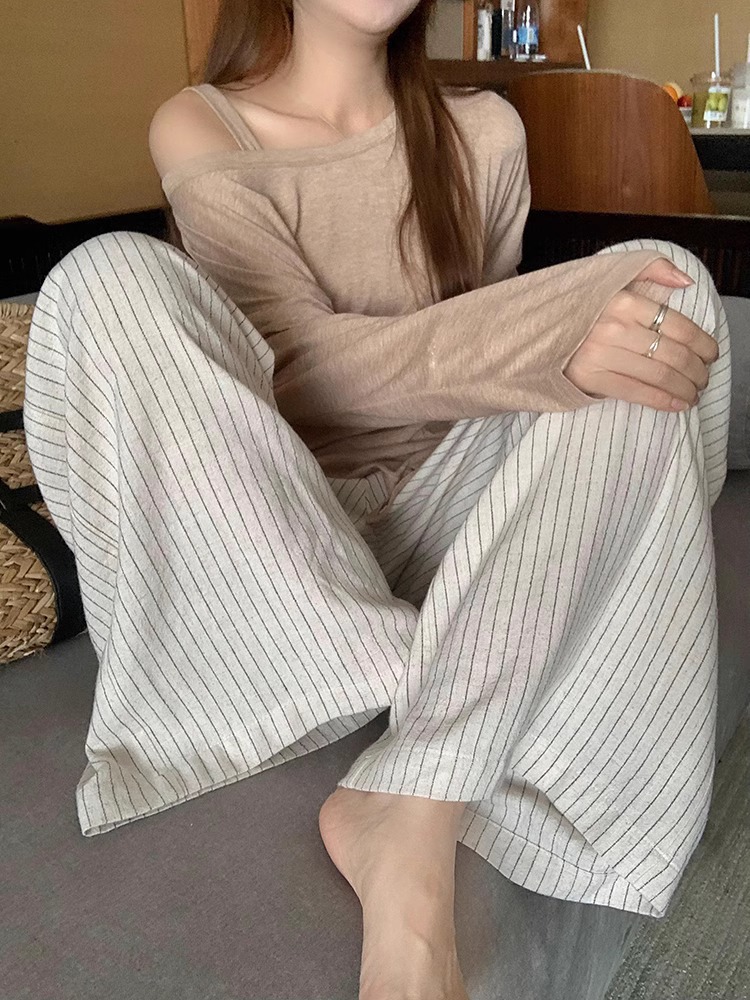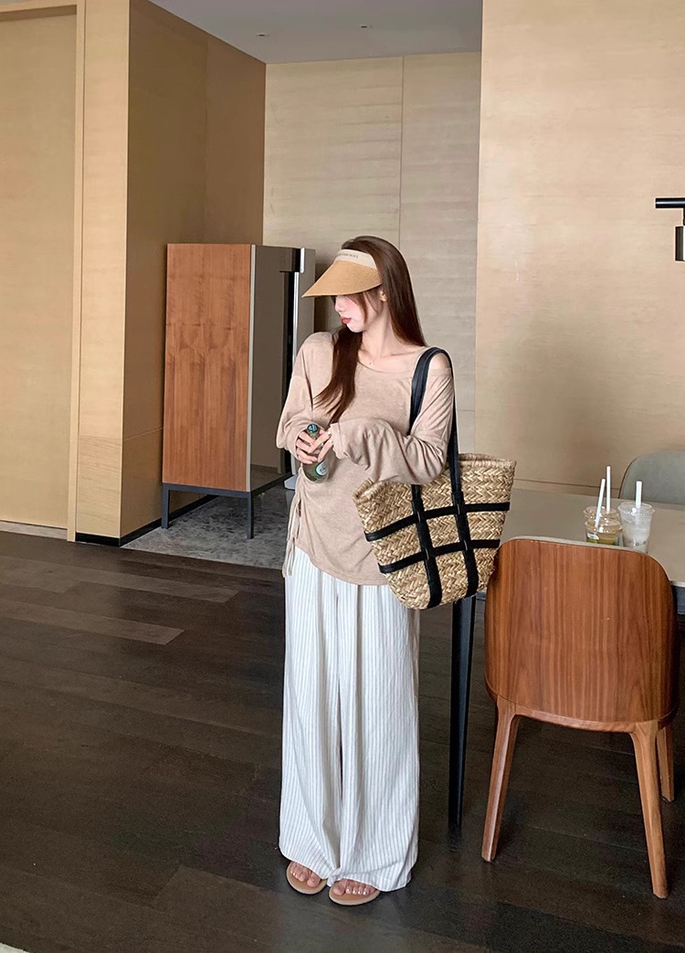 松弛感条纹棉麻花苞休闲裤女松紧腰显瘦肌理垂感拖地长裤春季