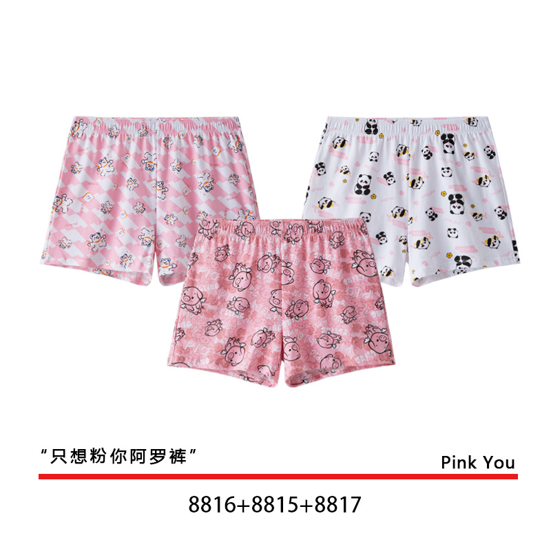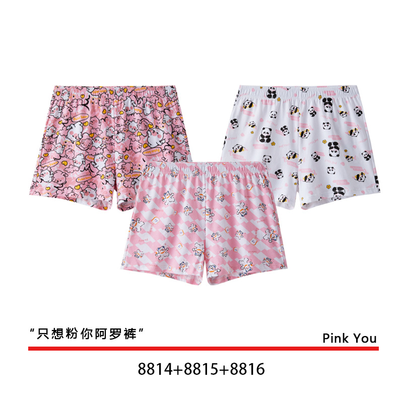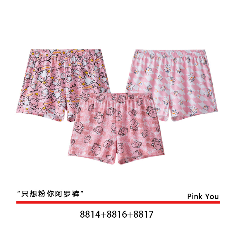 Fliggy 핑크 귀여운 코튼 만화 4 코너 남자 통기성 편안한 복서 유행 반바지 남자 친구 파자마 바지 루즈스토어 가기