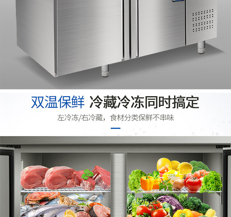 작업대 냉동고 주방 상업용 냉동 냉동 케이터링 스테인레스 스틸 이중 온도 냉장고 평면 냉각 콘솔 냉장고