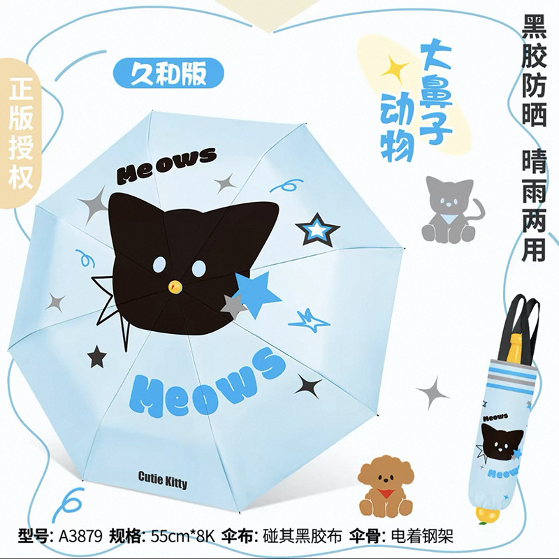 • 노란색 손잡이 새끼 고양이 수동 우산