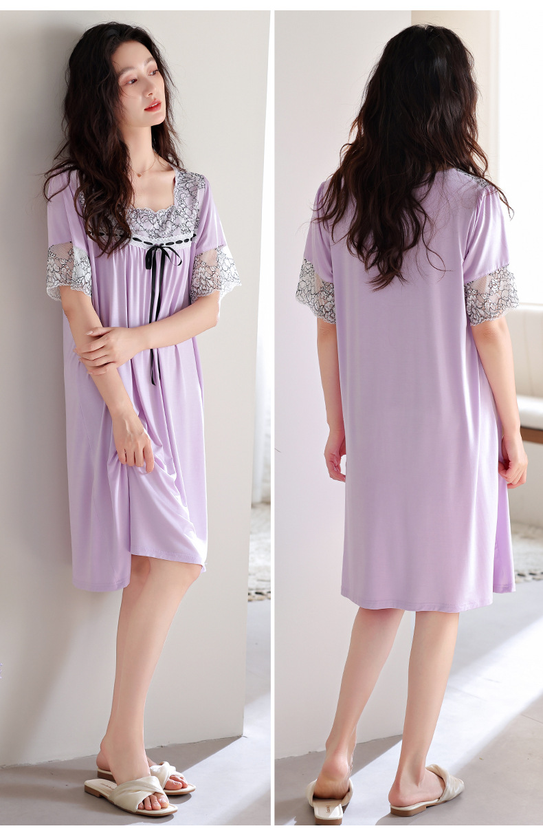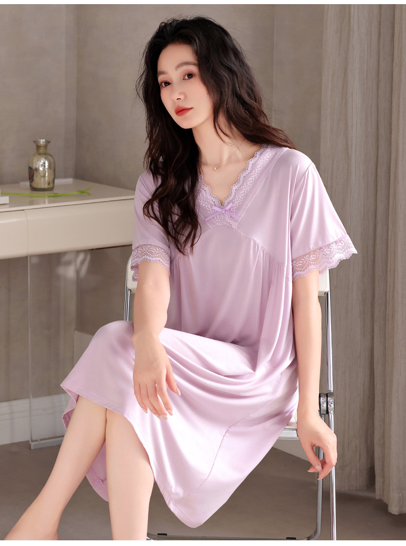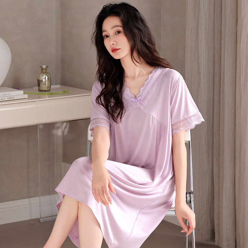 여성 나이트 드레스 여름 2025 새로운 모달 아이스 실크 여름 반팔 홈 옷 중년 어머니 잠자는 원피스스토어 가기