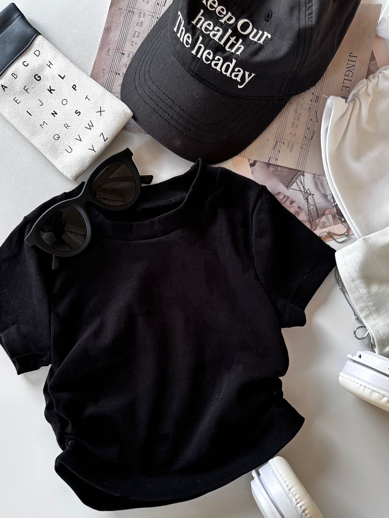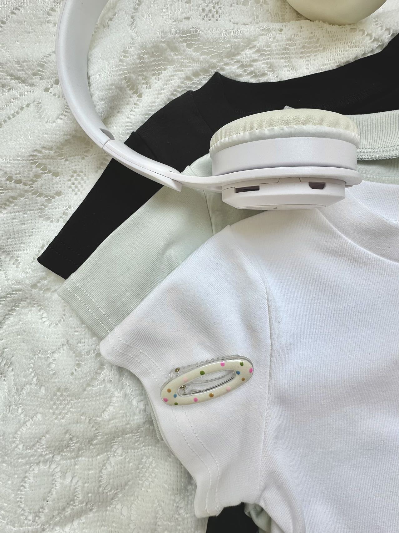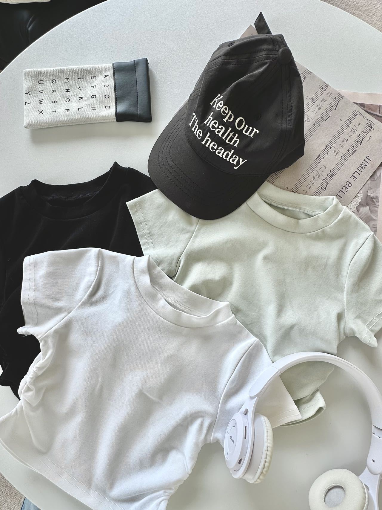 여자 티셔츠 2025 여름 새 한국 스타일 주름 티셔츠 올 매치 솔리드 컬러 반팔 웨스턴 스타일 기본 티셔츠