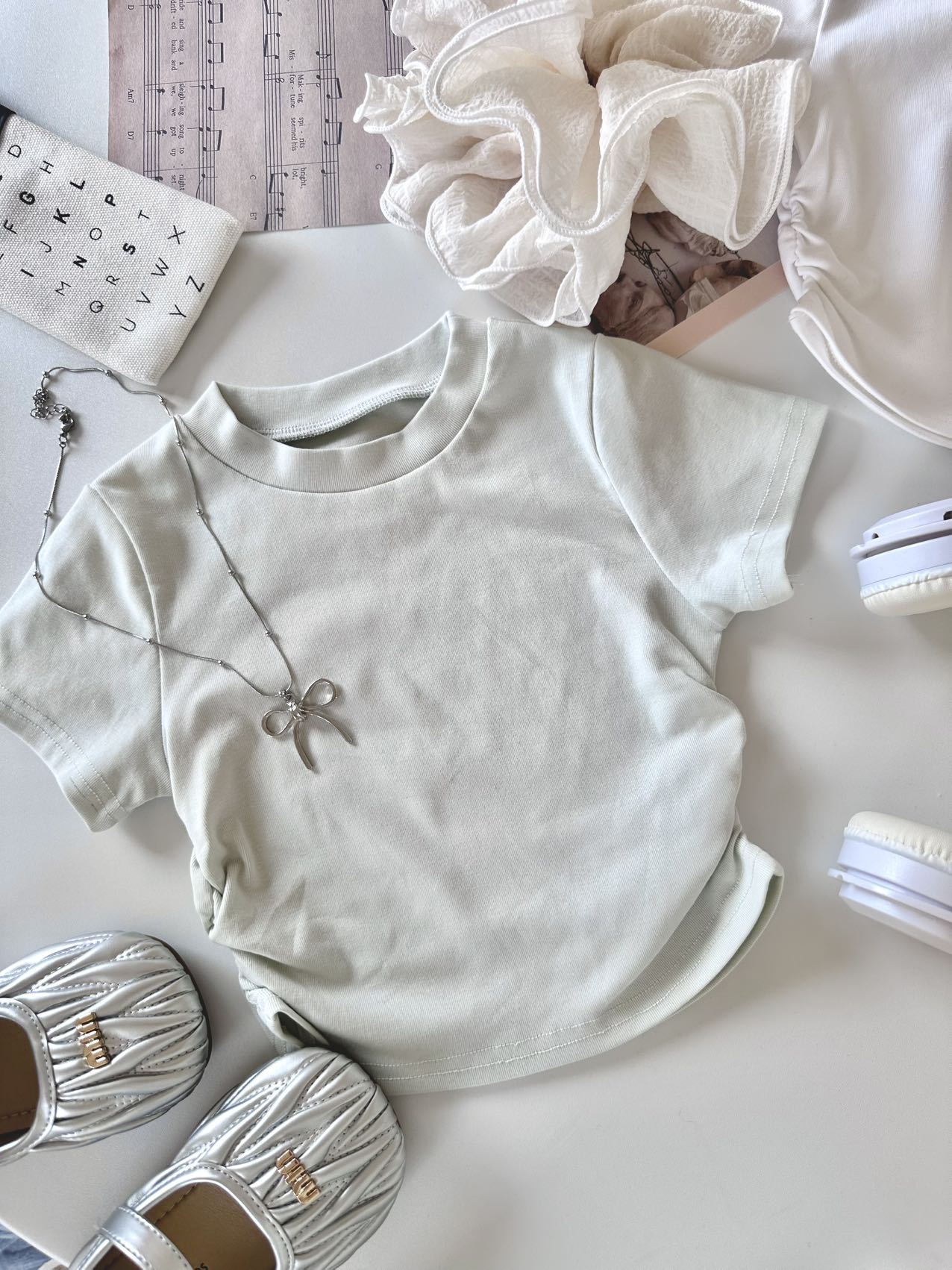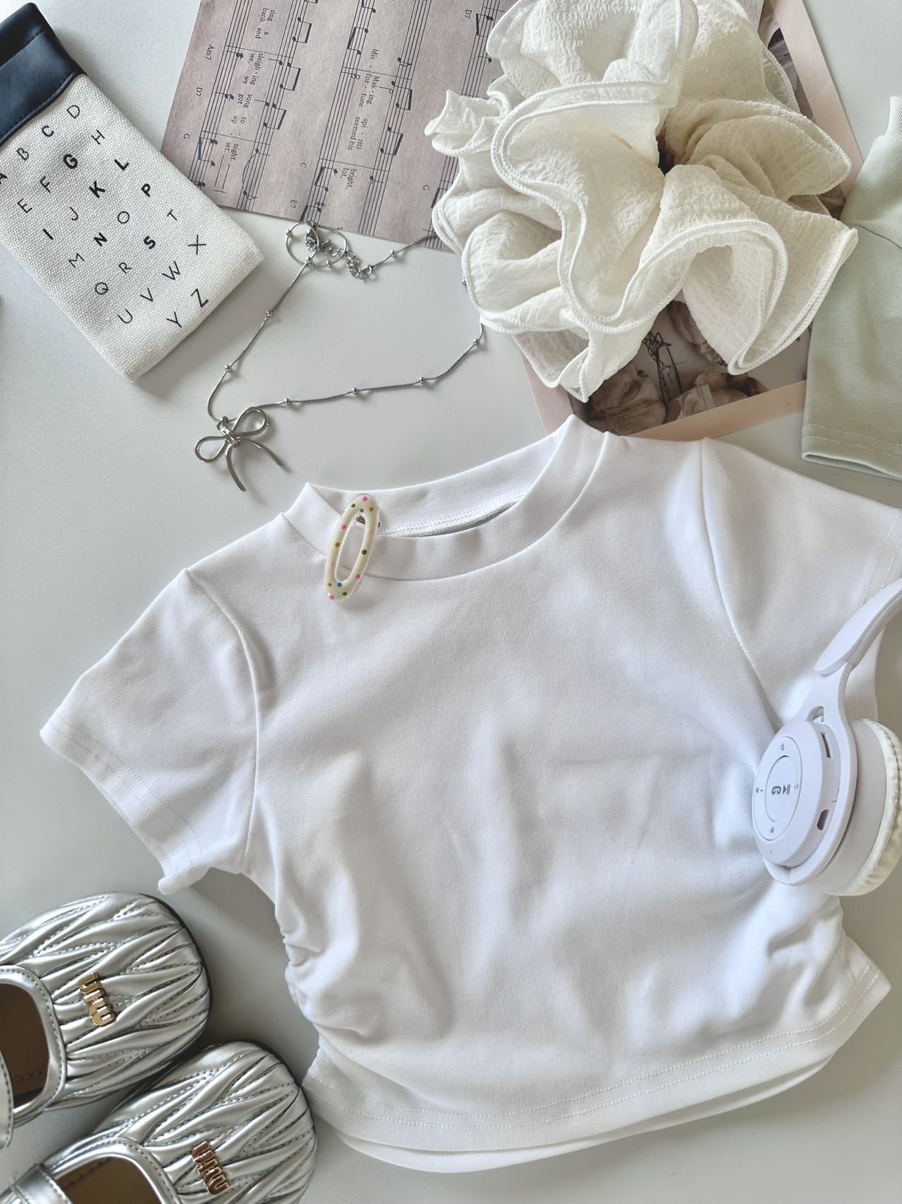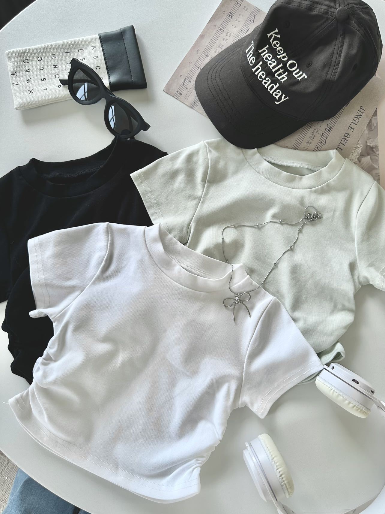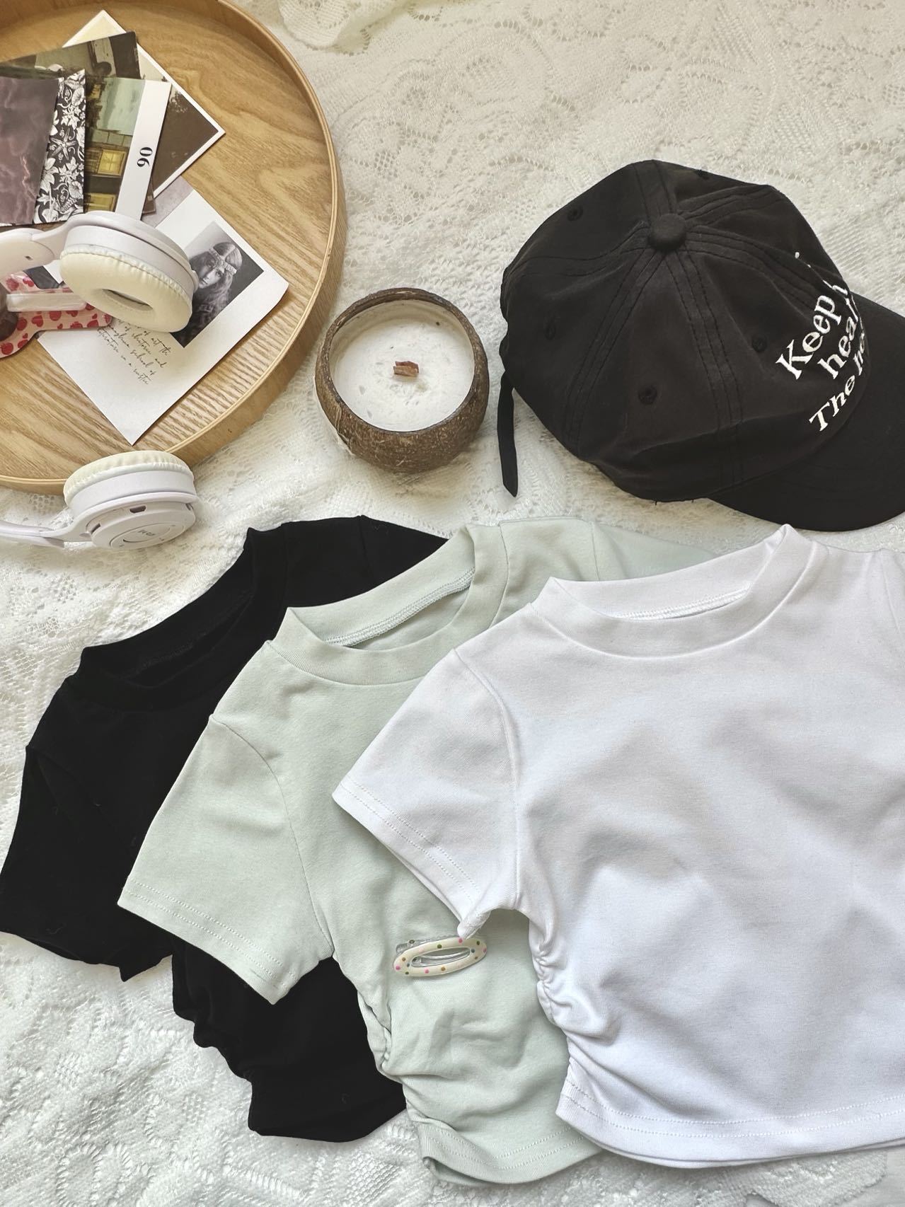 여자 티셔츠 2025 여름 새 한국 스타일 주름 티셔츠 올 매치 솔리드 컬러 반팔 웨스턴 스타일 기본 티셔츠스토어 가기