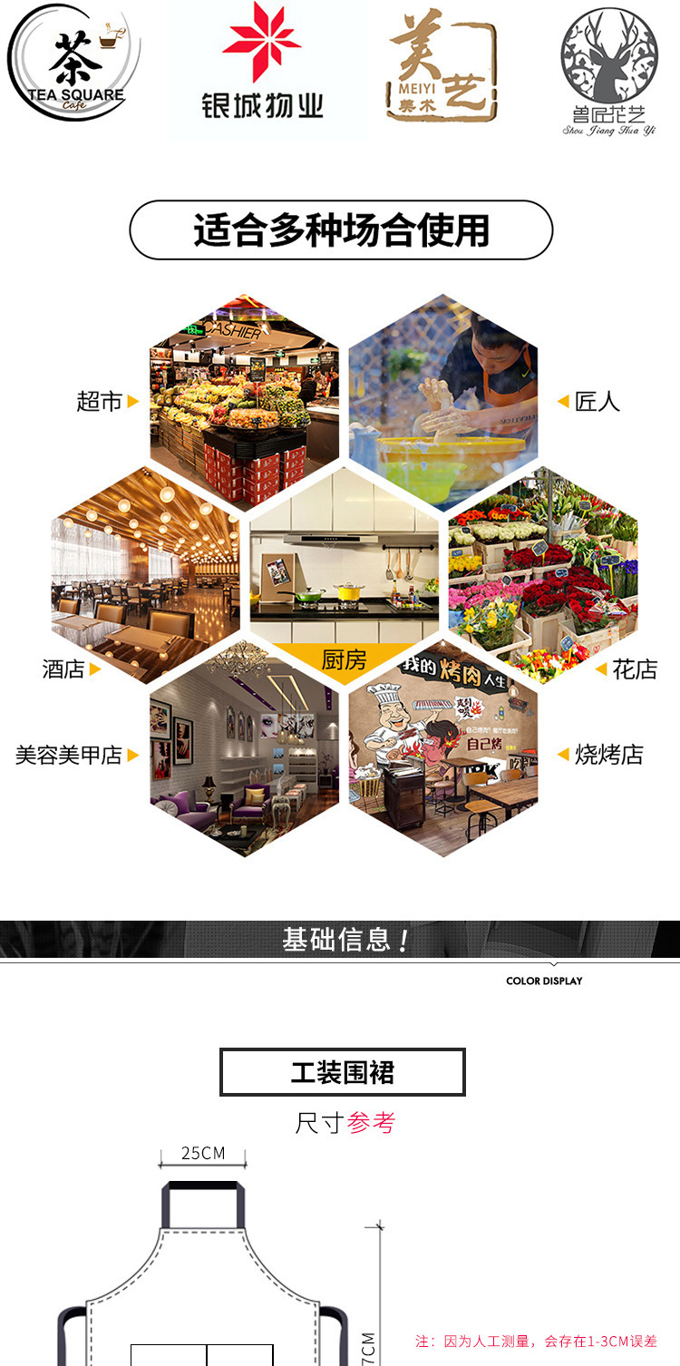앞치마 맞춤 로고 인쇄 한국 패션 여성 가구 슈퍼마켓 우유 차 가게 케이터링 산업 특별 웨이터