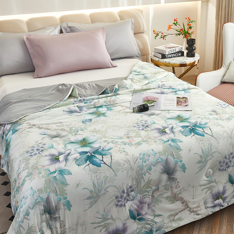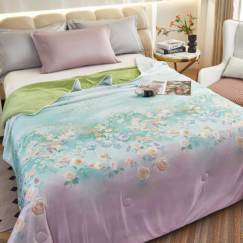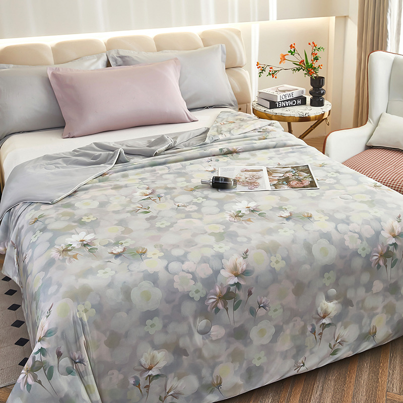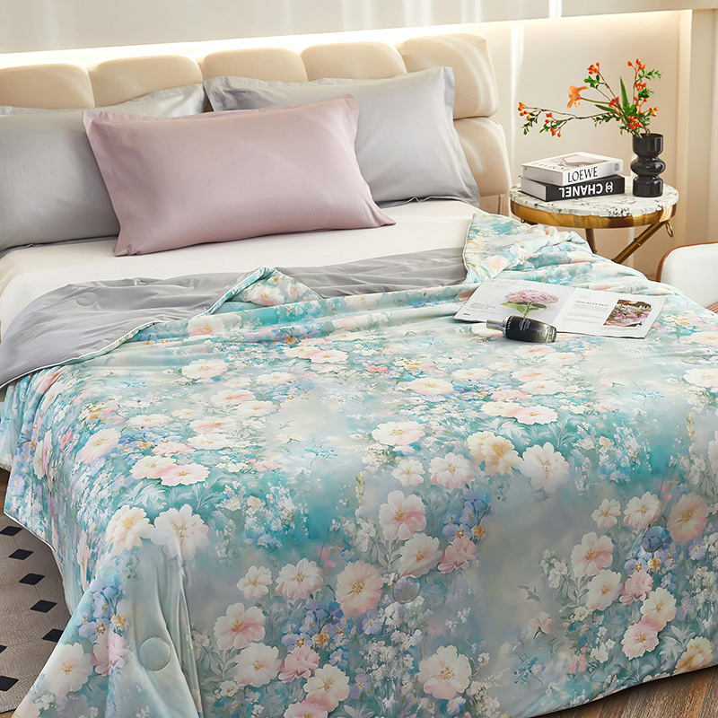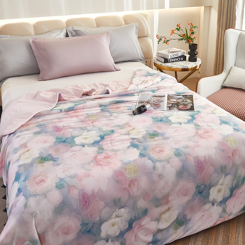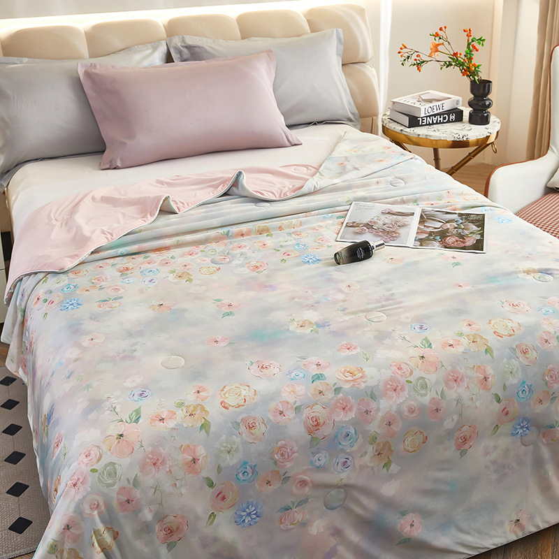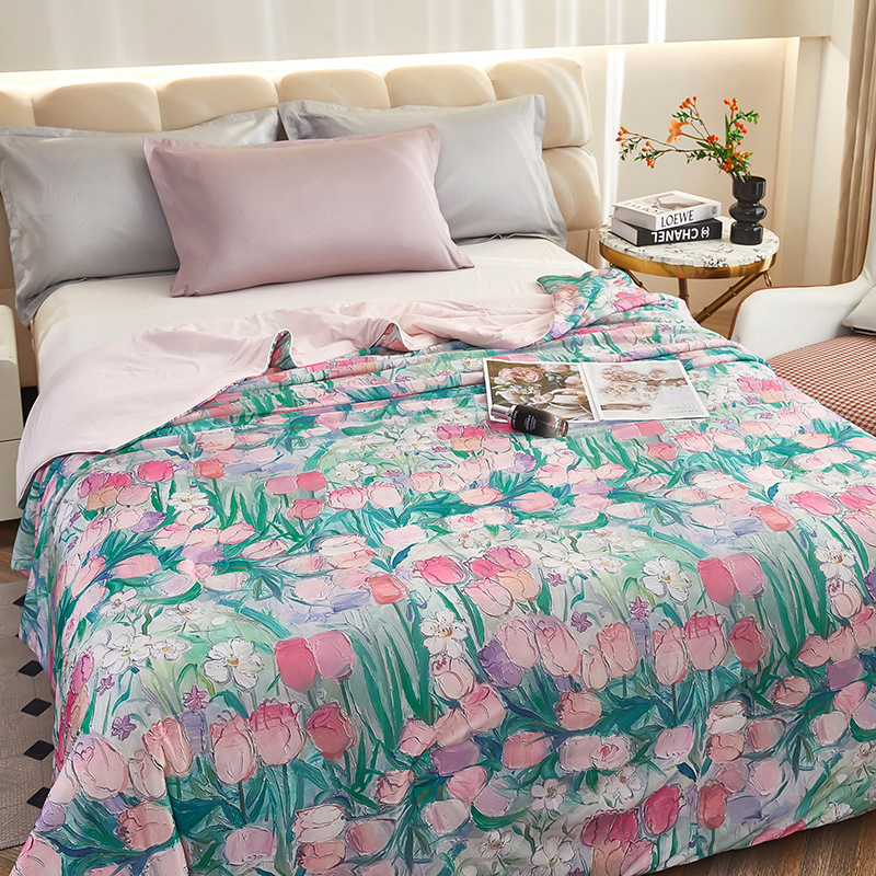 도매 클래스 A 니트 쿨 실크 스크린 인쇄 꽃 여름 이불 싱글 여름 더블 얇은 이불 에어컨 이불 선물 여름 쿨 이불