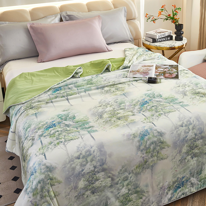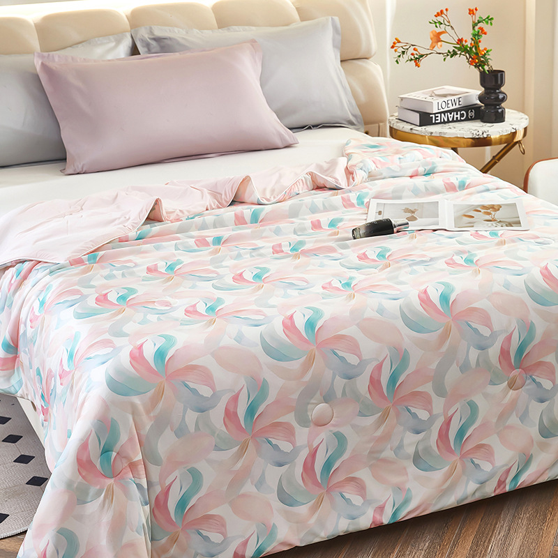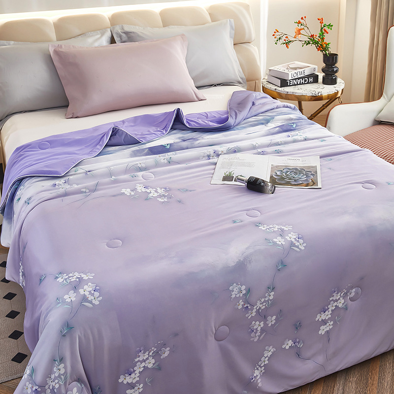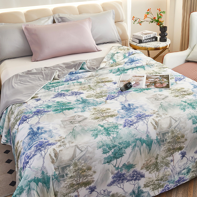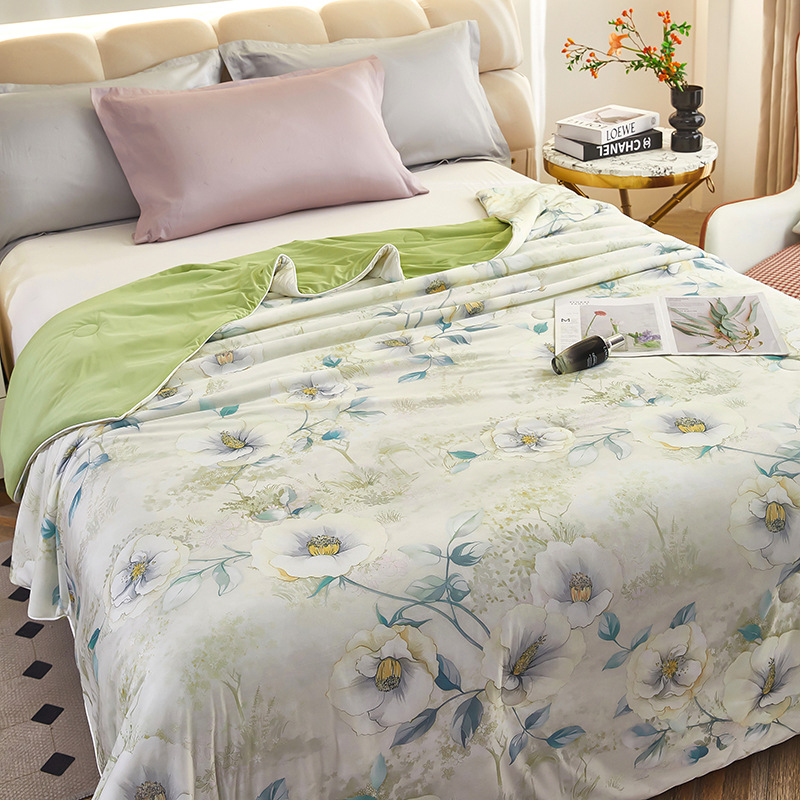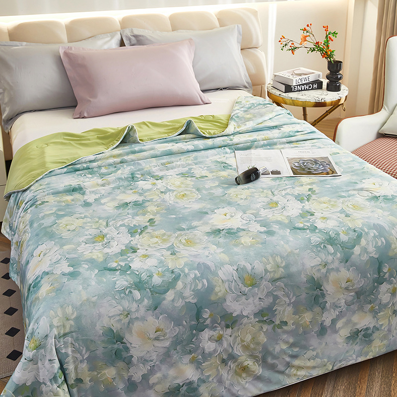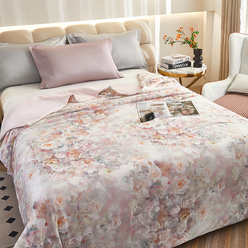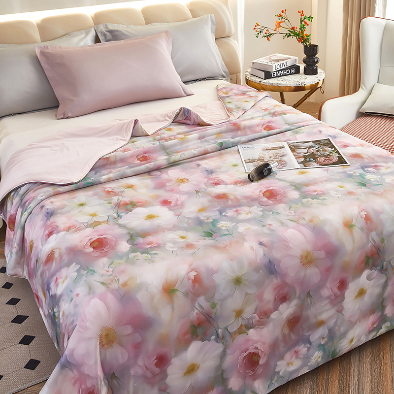 도매 클래스 A 니트 쿨 실크 스크린 인쇄 꽃 여름 이불 싱글 여름 더블 얇은 이불 에어컨 이불 선물 여름 쿨 이불