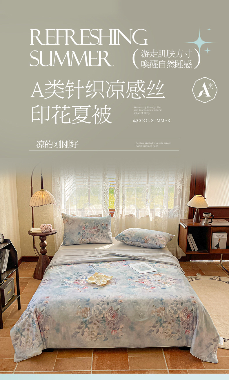 도매 클래스 A 니트 쿨 실크 스크린 인쇄 꽃 여름 이불 싱글 여름 더블 얇은 이불 에어컨 이불 선물 여름 쿨 이불스토어 가기