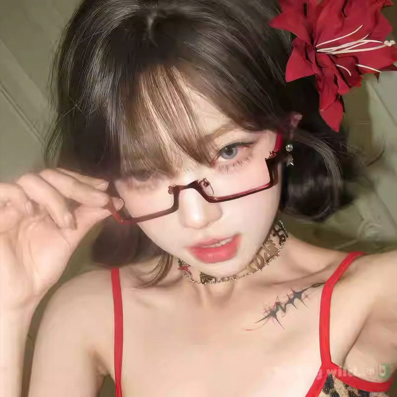 2025 Yujie Purple 하프 프레임 안경 여성용 순수 블랙 프레임 없음 렌즈 낮은 하프 프레임 프레임 프레임 cos 2 차 전쟁 복귀스토어 가기