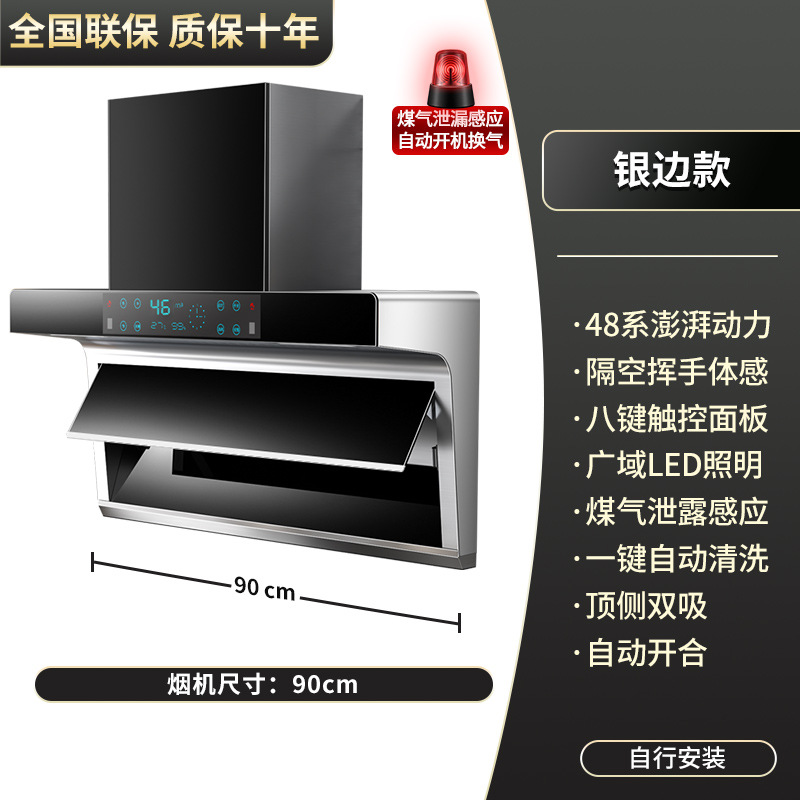 • 90cm 자동 실버 엣지 48 시리즈 - 자동 개폐 - 공기 누출 센서 - 자체 설치