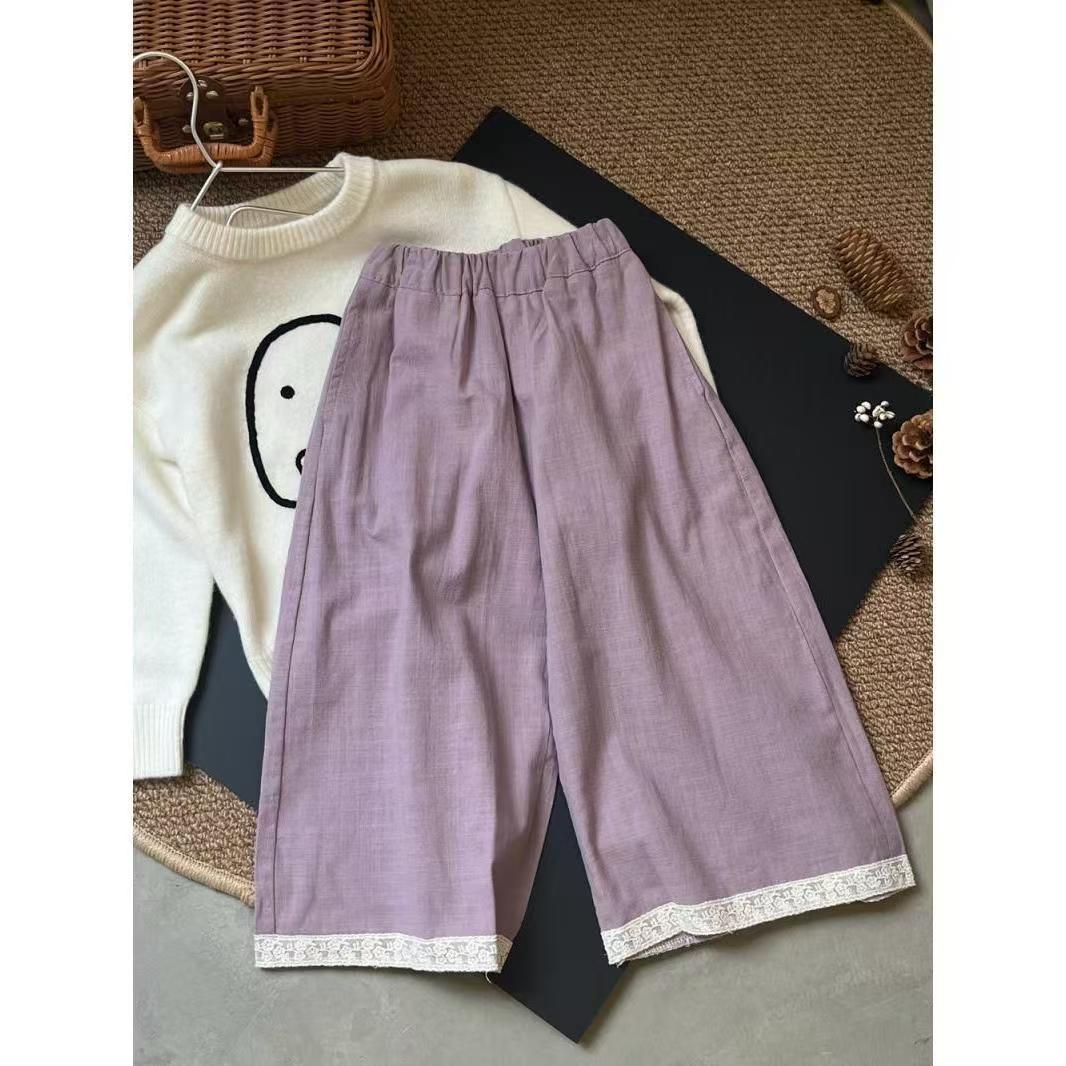 한국 아동복 서양식 바지 2025 봄 새로운 베이비 레이스 엣지 패션 소녀 어린이 느슨한 넓은 다리 바지