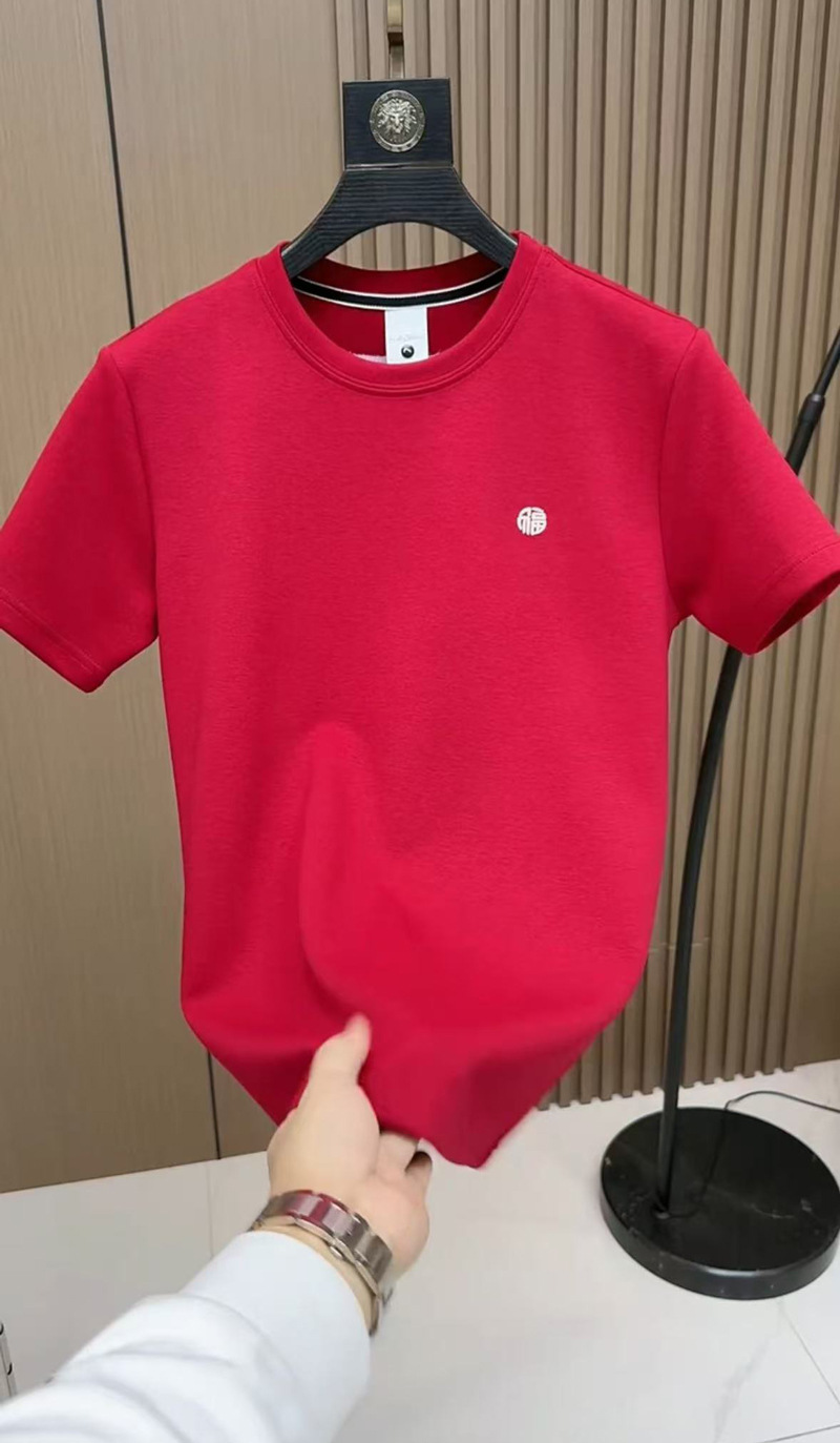 2025 봄과 여름 새로운 남자 올매치 두꺼운 반팔 티셔츠 탑 반소매 단순 포춘 스타일 슬림 핏스토어 가기