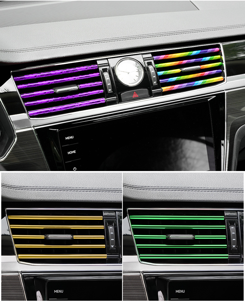 자동차 에어컨 에어 아울렛 장식 스트립 자동차 인테리어 개조 액세서리 자동차 용품 전체 블레이드 클립 형 조명 스트립