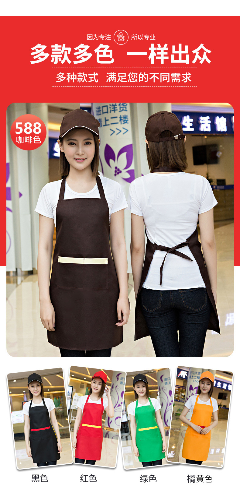광고 앞치마 맞춤 로고 인쇄 케이터링 특별 홈 주방 레스토랑 목 웨이터 작업 의류 상업스토어 가기