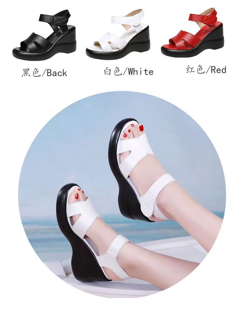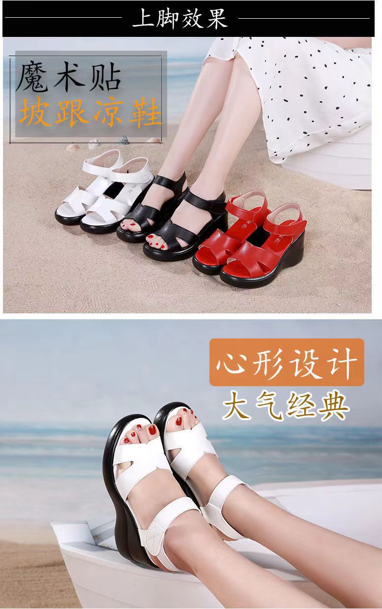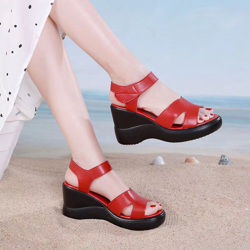 국경 간 대외 무역 새로운 2024 웨지 샌들 방수 플랫폼 중년 높이 증가 두꺼운 밑창 여성용 생선 입 신발