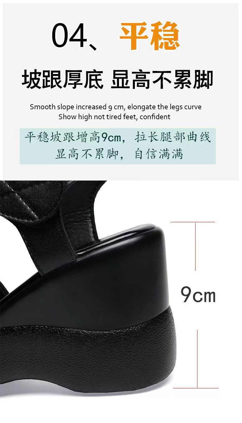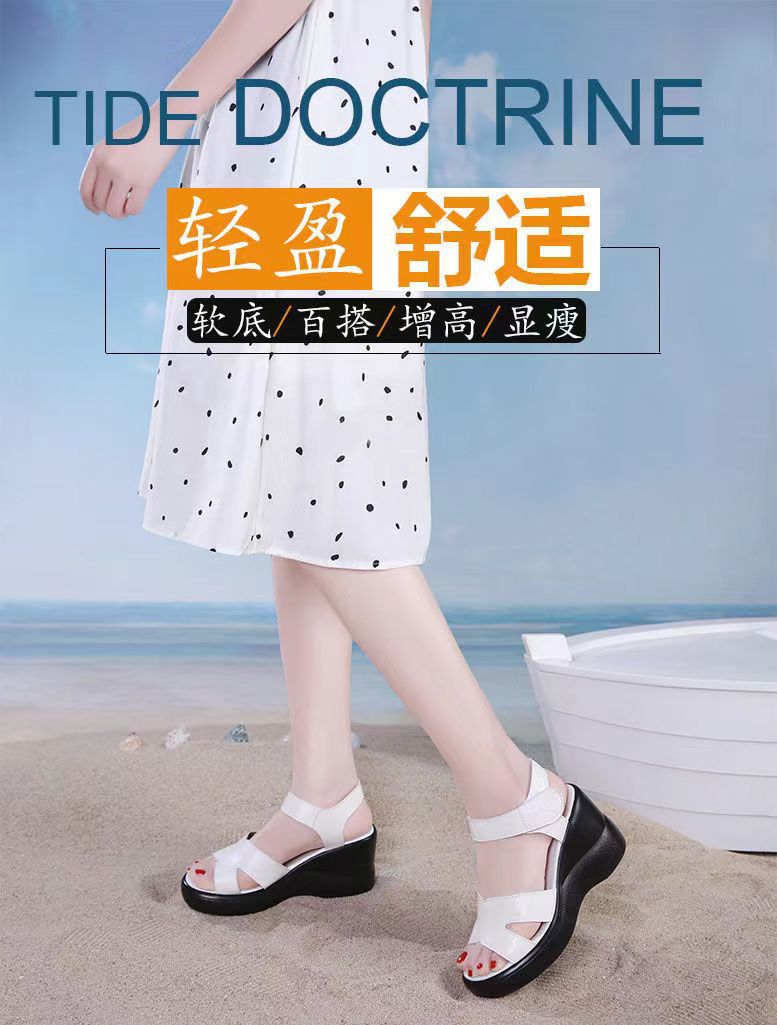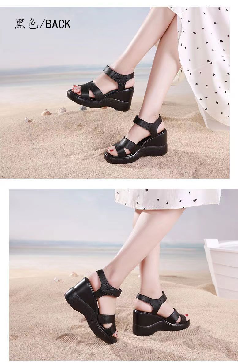 국경 간 대외 무역 새로운 2024 웨지 샌들 방수 플랫폼 중년 높이 증가 두꺼운 밑창 여성용 생선 입 신발스토어 가기